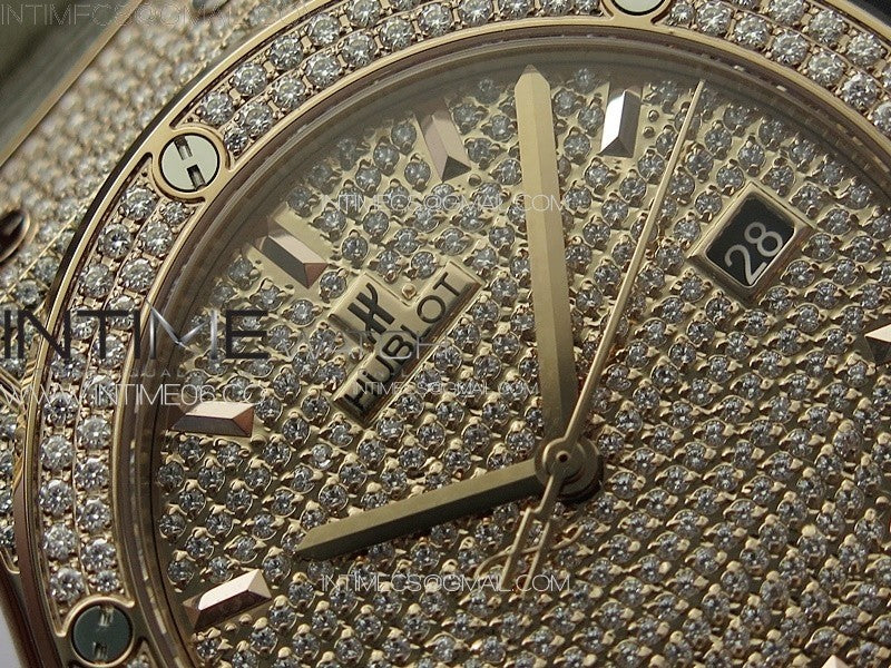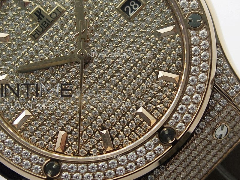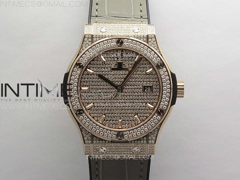 Classic Fusion 42mm RG Paved Diamonds Case And Bezel B50F Paved Diamonds Dial On Gray Gummy Strap A2892