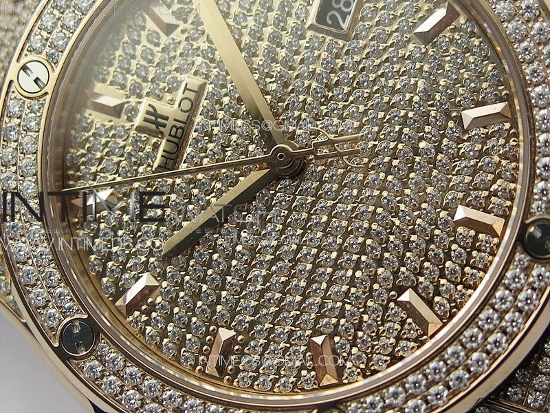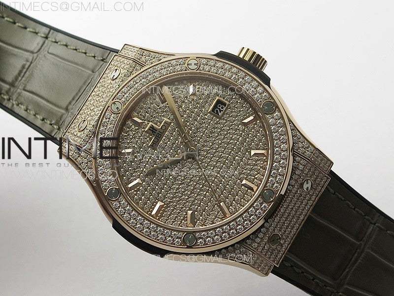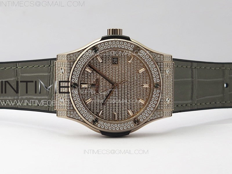 Classic Fusion 42mm RG Paved Diamonds Case And Bezel B50F Paved Diamonds Dial On Gray Gummy Strap A2892 Menge