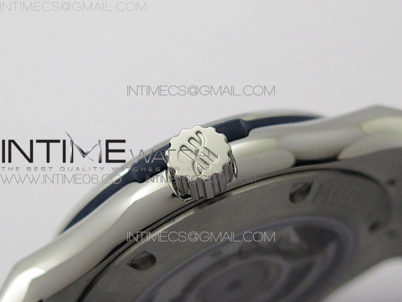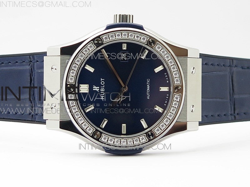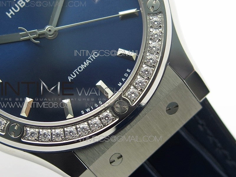 Classic Fusion 42mm SS Paved Diamonds Bezel B50F Blue Dial On Blue Gummy Strap A2892
