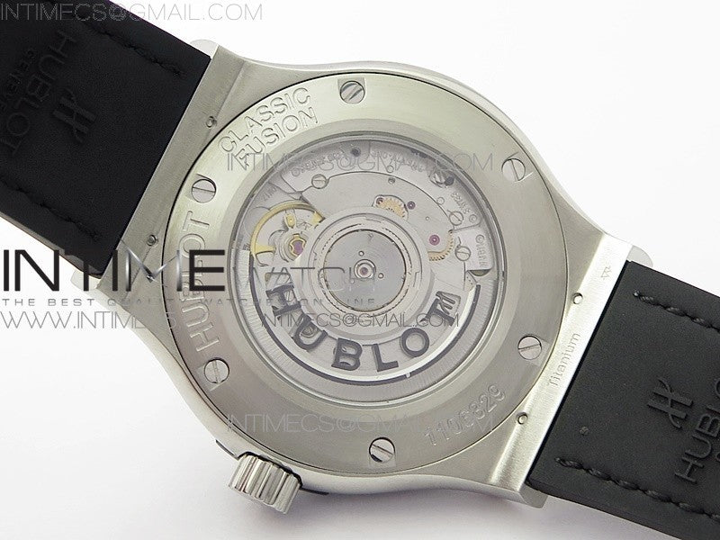 Classic Fusion 42mm SS WWF 1:1 Best Edition Black Dial On Black Gummy Strap Asian HB1112