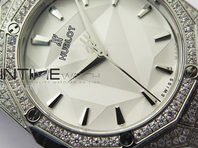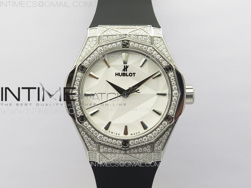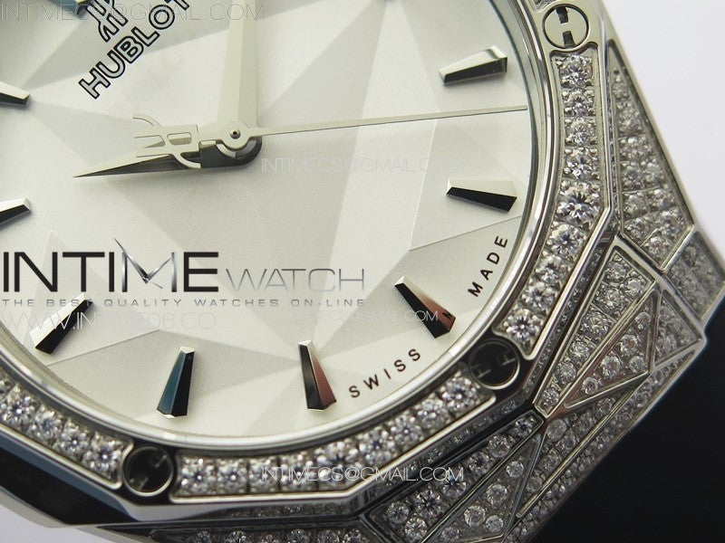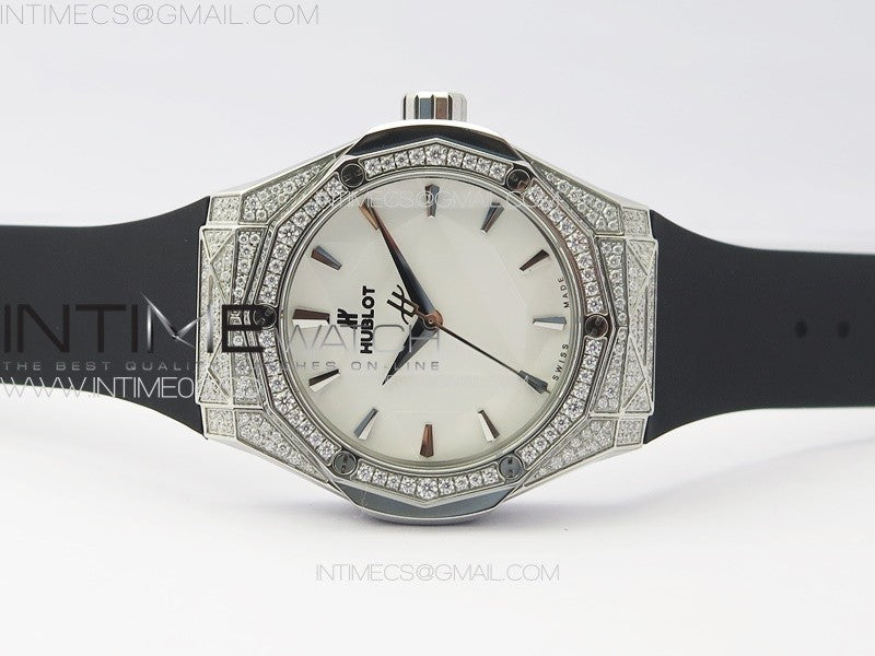 Classic Fusion Orlinski SS Full Real Diamonds B50F 1:1 Best Edition White Faceted Dial on Black Rubber Strap A2892