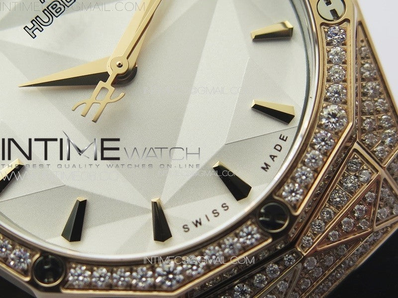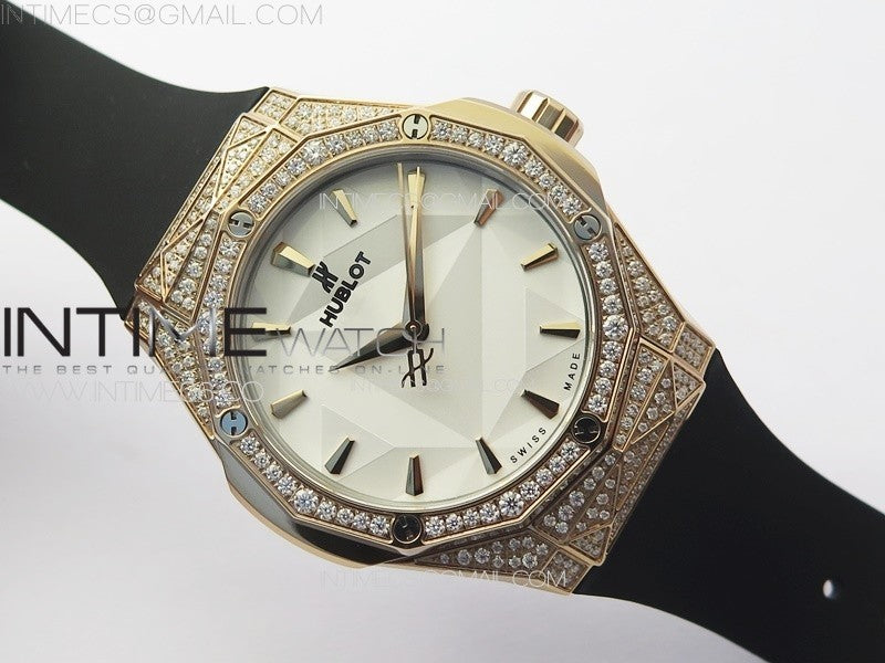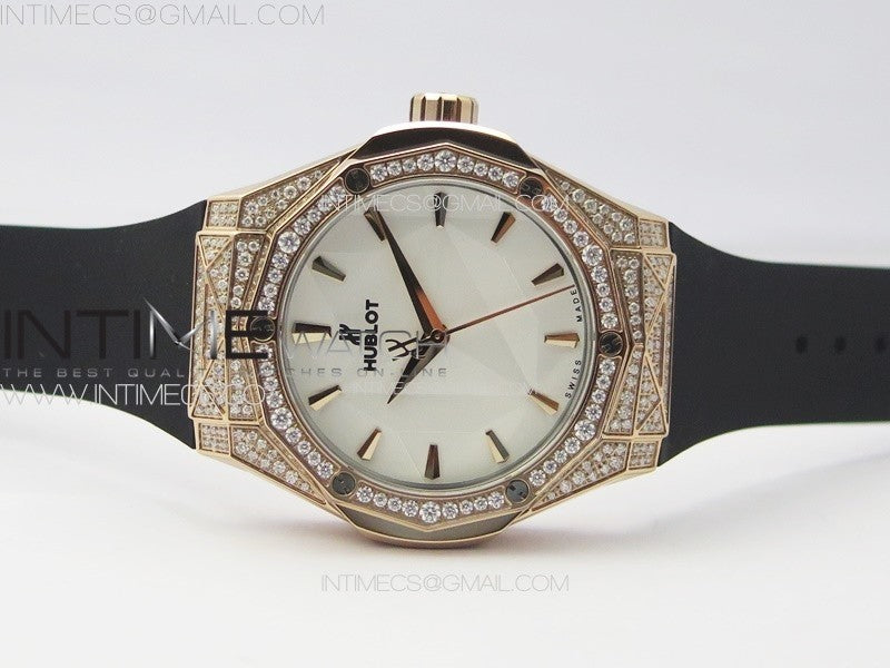 Classic Fusion Orlinski SS Full Real Diamonds RG B50F 1:1 Best Edition White Faceted Dial on Black Rubber Strap A2892