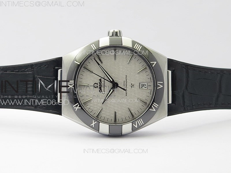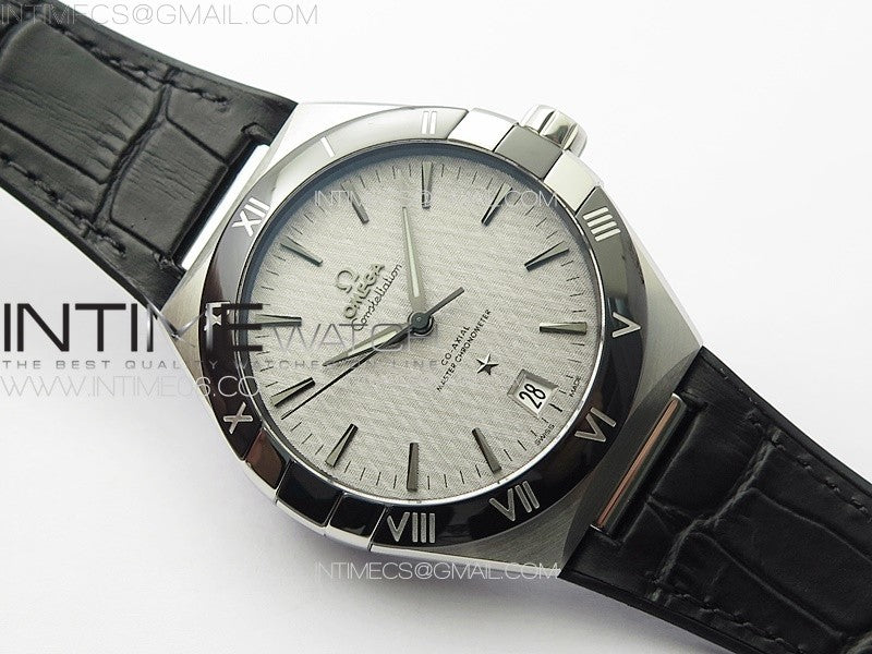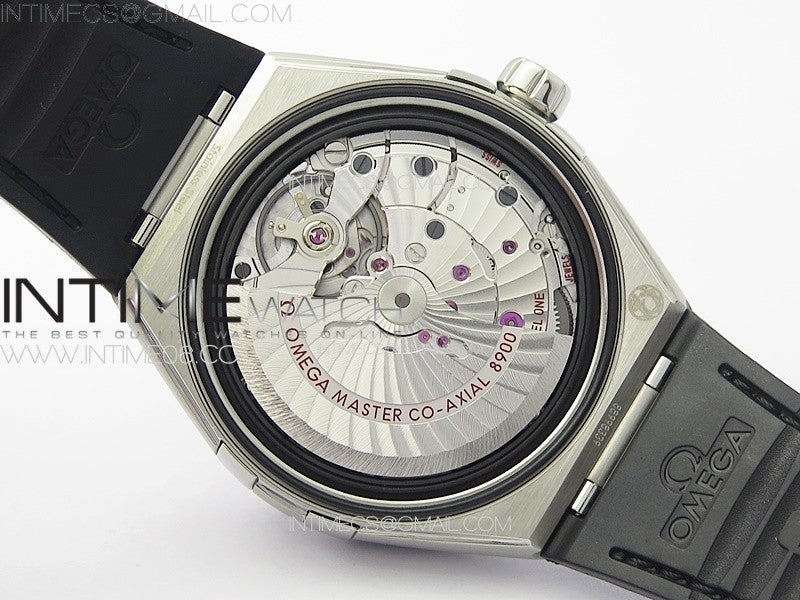 Constellation 41mm SS/Black Ceramic Bezel VSF 1:1 Best Edition Silver Dial on Black Gummy Strap A8900
