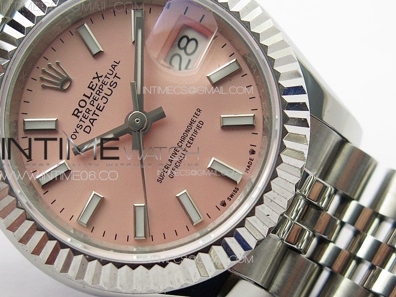 Datejust 28mm 279179 SS APSF Best Edition Pink Dial Sticks Markers on SS Jubilee Bracelet NH05