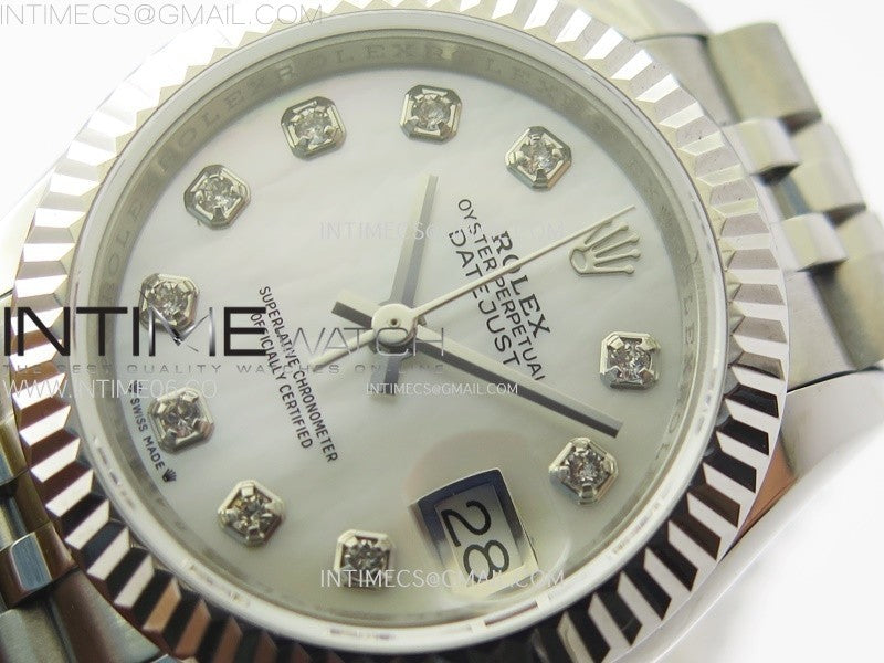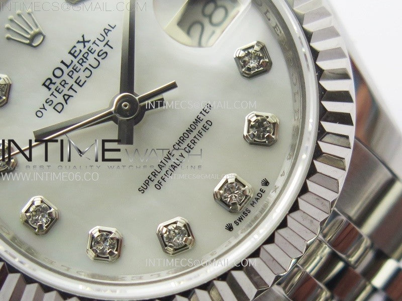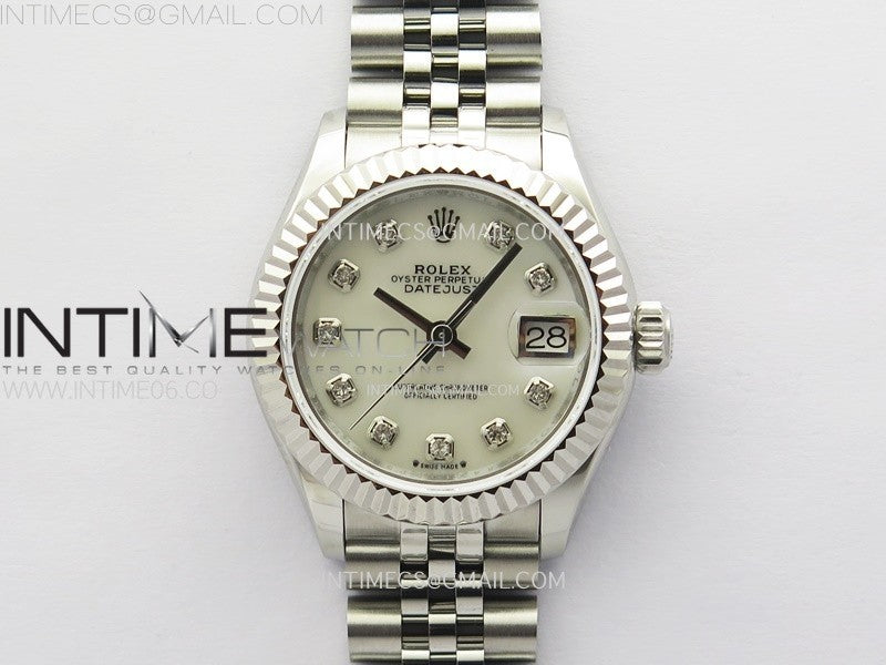 Datejust 28mm 279179 SS APSF Best Edition White MOP Dial Crystals Markers on SS Jubilee Bracelet NH05