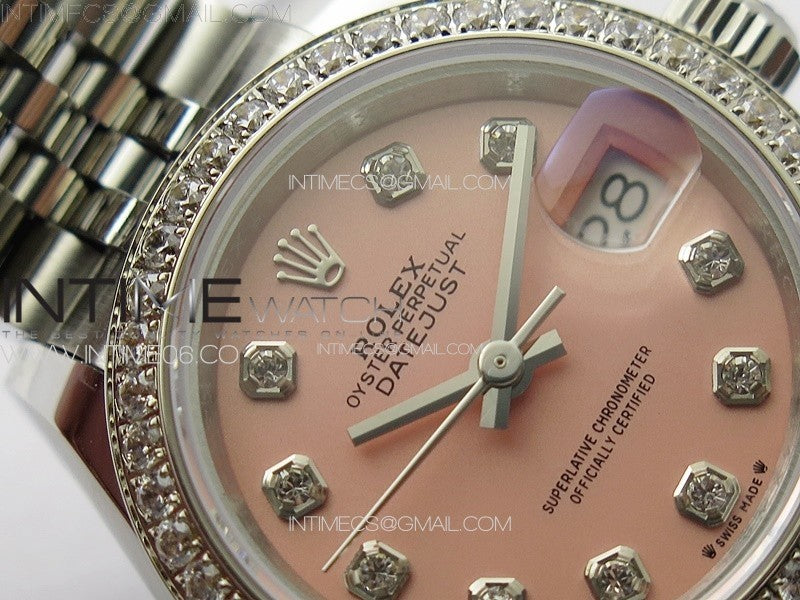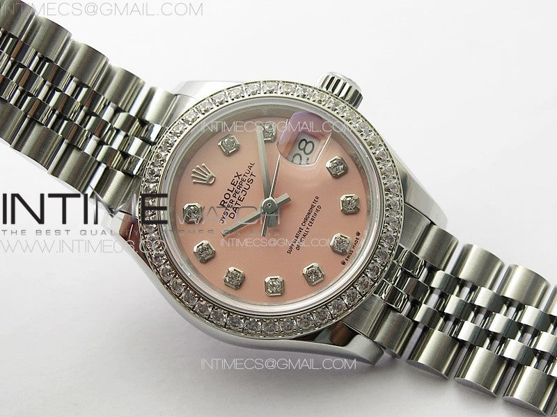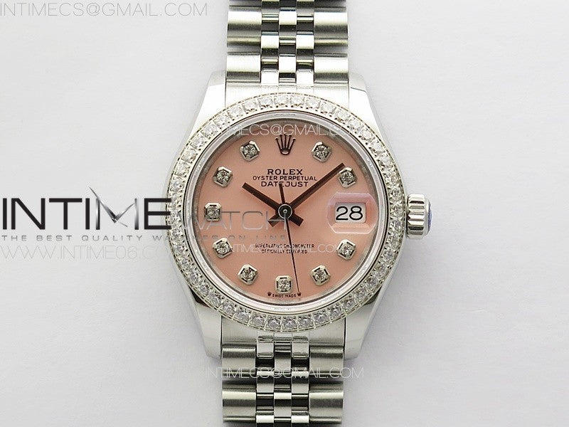 Datejust 28mm 279179 SS/Crystals APSF Best Edition Pink Dial Crystals Markers on SS Jubilee Bracelet NH05