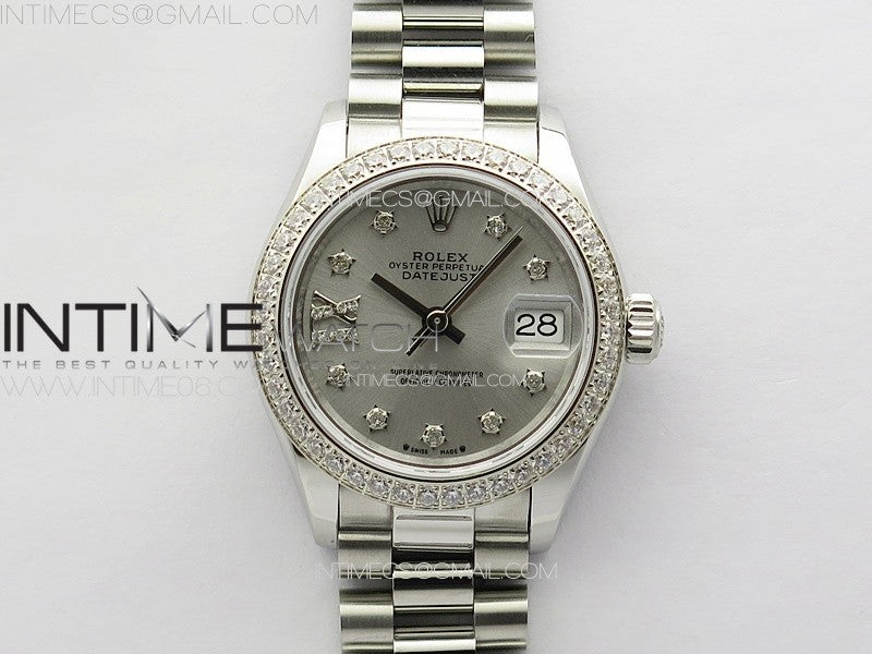 Datejust 28mm 279179 SS/Crystals APSF Best Edition Silver Dial Stars Crystals Markers on SS President Bracelet NH05