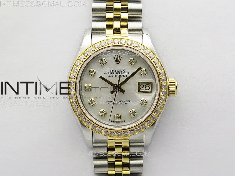 Datejust 28mm 279179 SS/YG APSF Best Edition White MOP Dial Crystals Markers on SS/YG Jubilee Bracelet NH05