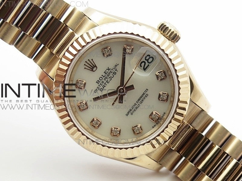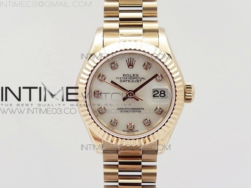 DateJust 28mm RG Diamond Bezel BP Best Edition White MOP Dial on RG Bracelet ETA2671