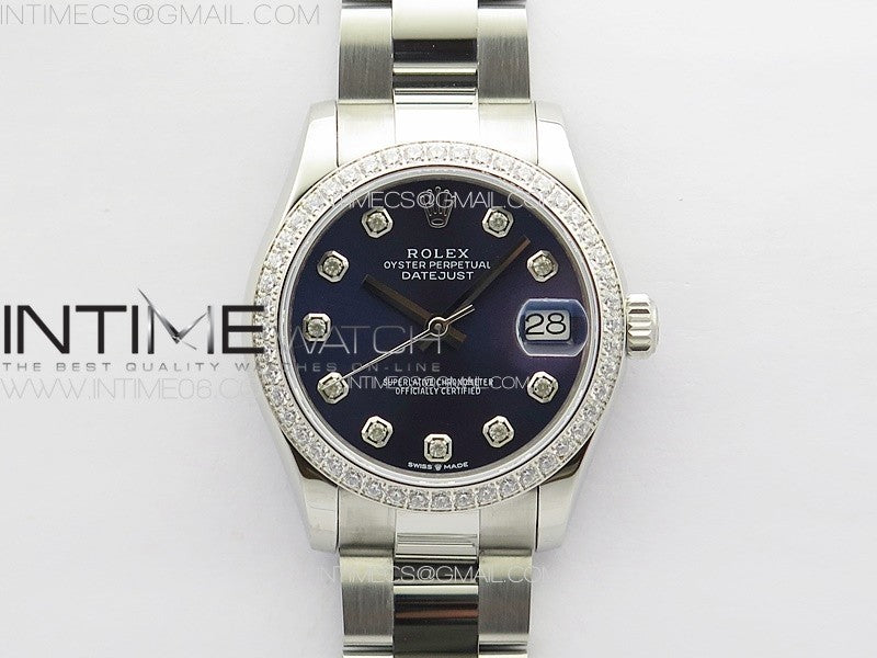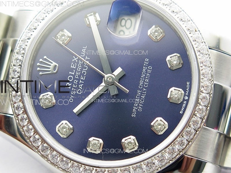DateJust 31mm 178271 SS Crystal Bezel APSF Best Edition Blue Dial Crystal Markers on Oyster Bracelet A2824