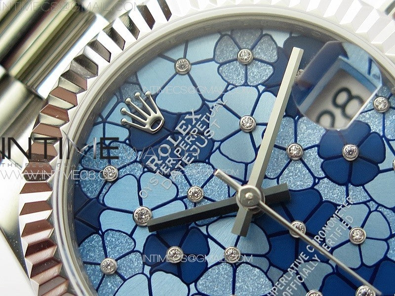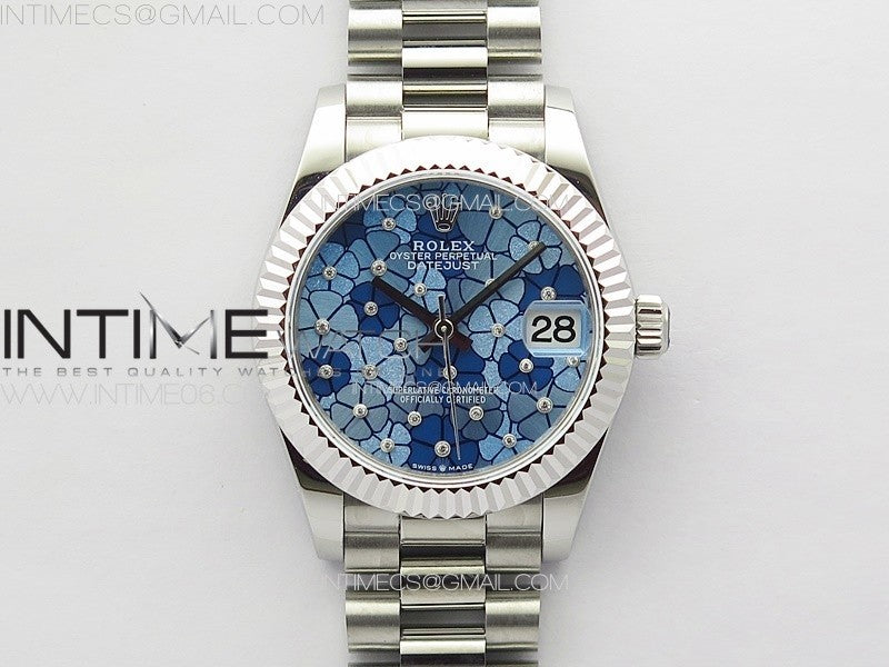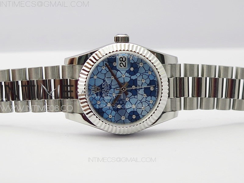 DateJust 31mm 278274 904L SS GMF Best Edition Blue Flowers Crystals Dial on 904L President Bracelet A2824
