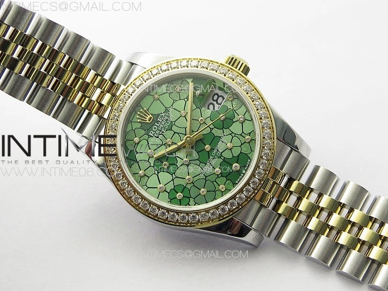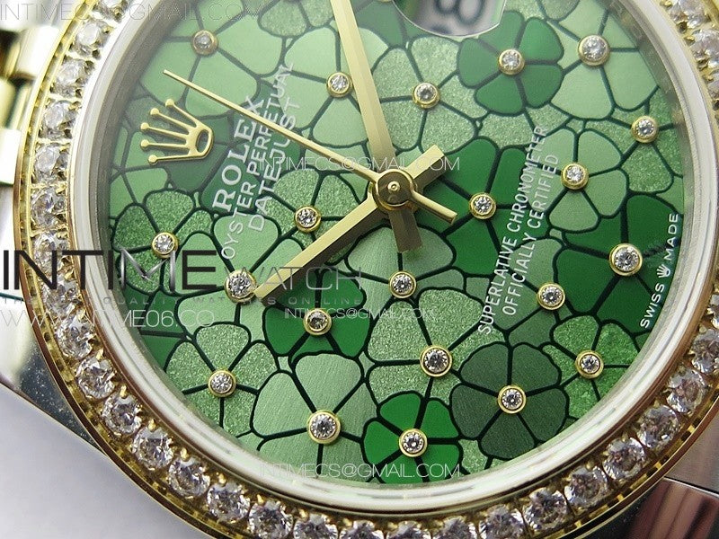 DateJust 31mm 278274 904L SS/YG Crystals Bezel GMF Best Edition Green Flowers Crystals Dial on 904L SS/YG Jubilee Bracelet A2824