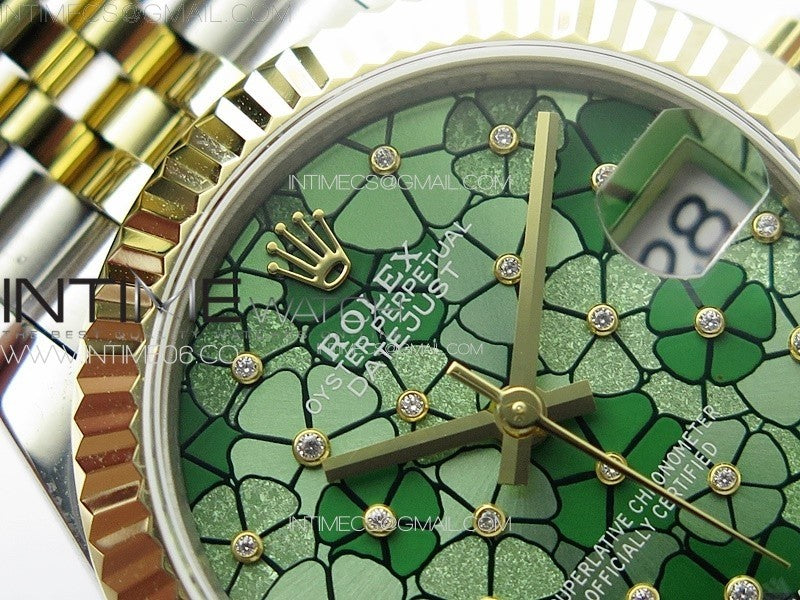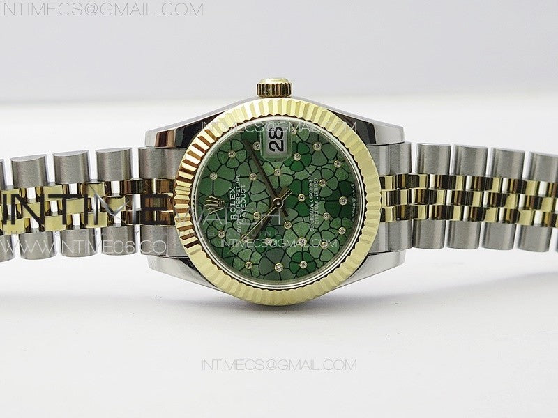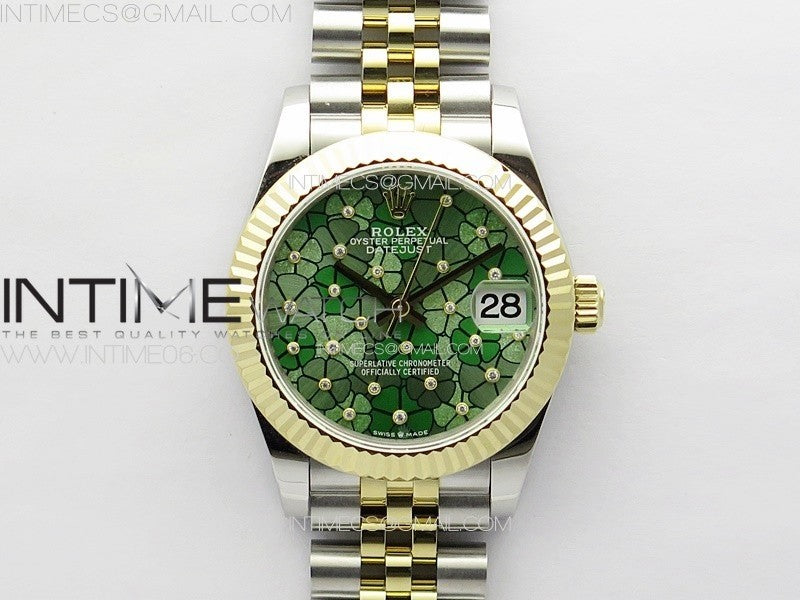 DateJust 31mm 278274 904L SS/YG GMF Best Edition Green Flowers Crystals Dial on 904L SS/YG Jubilee Bracelet A2824