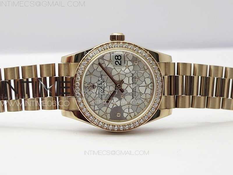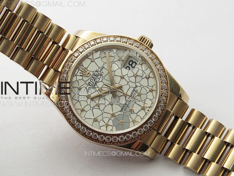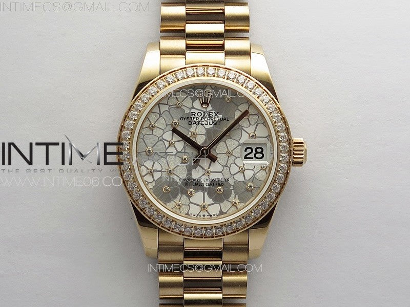 DateJust 31mm 278274 RG Crystals Bezel GMF Best Edition Silver Flowers Crystals Dial on RG President Bracelet A2824
