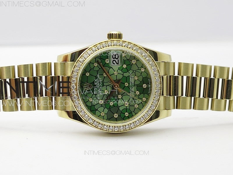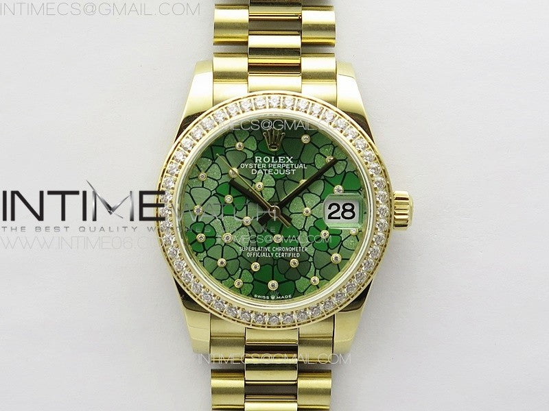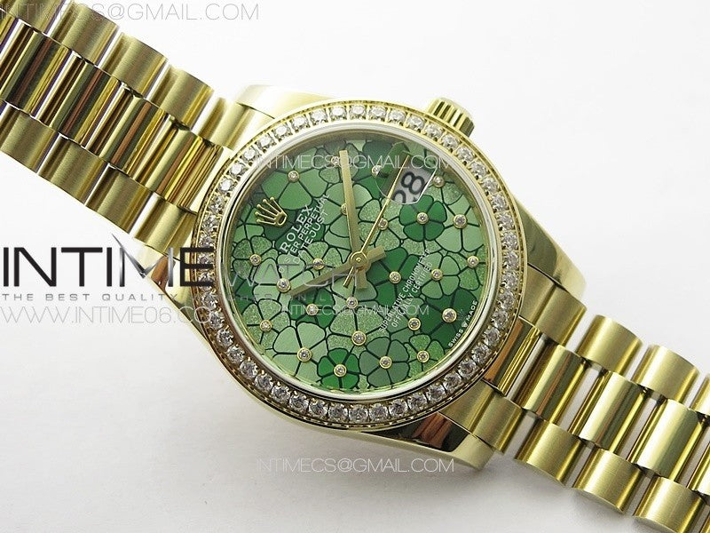 DateJust 31mm 278274 YG Crystals Bezel GMF Best Edition Green Flowers Crystals Dial on YG President Bracelet A2824
