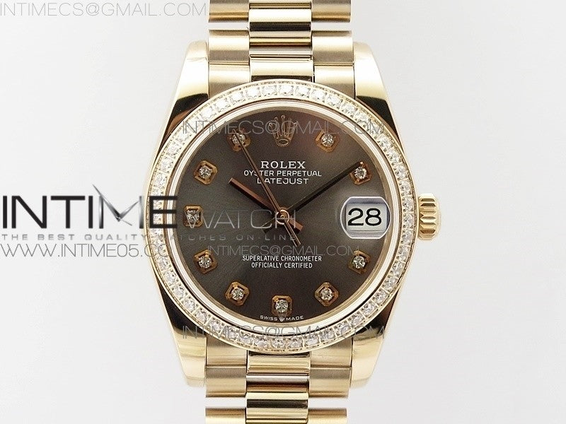 Datejust 31mm 278275 RG Dia Bezel BP Best Edition Gray Crystal Markers Dial on RG President Bracelet