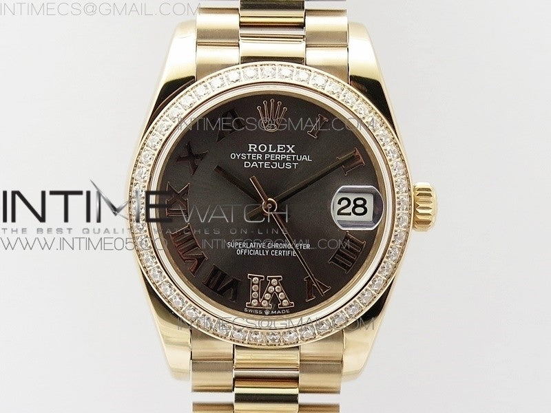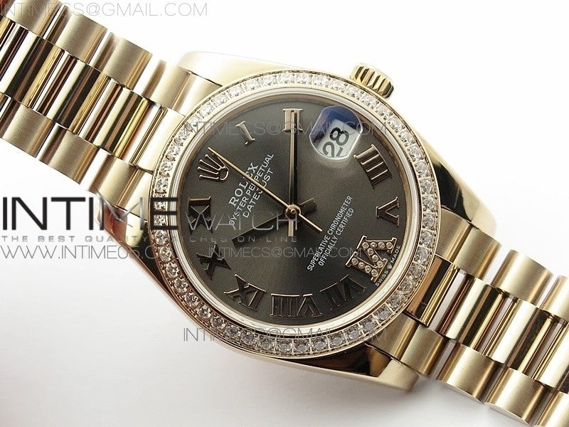 Datejust 31mm 278275 RG Dia Bezel BP Best Edition Gray Roman Markers Dial @6 Dia on RG President Bracelet