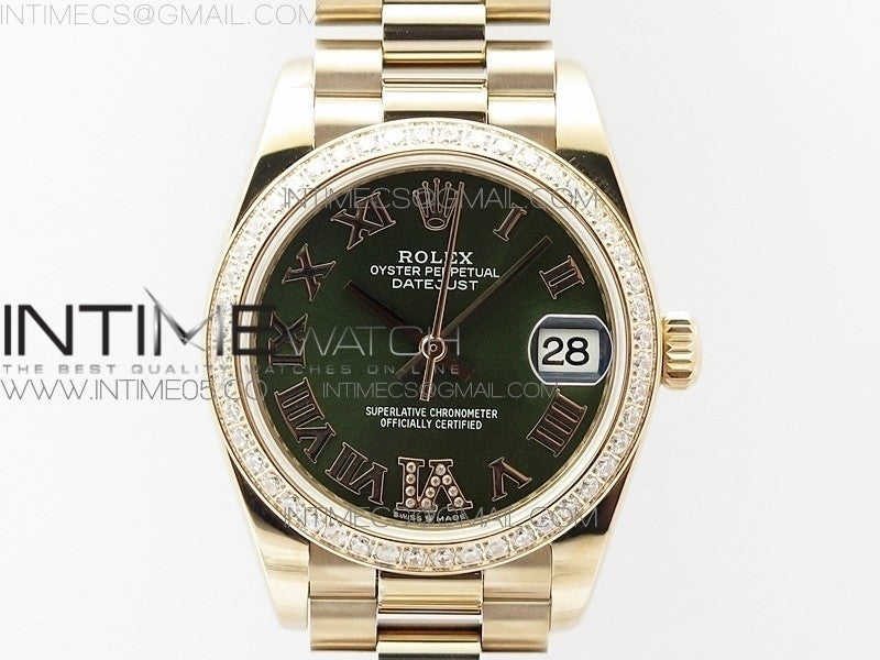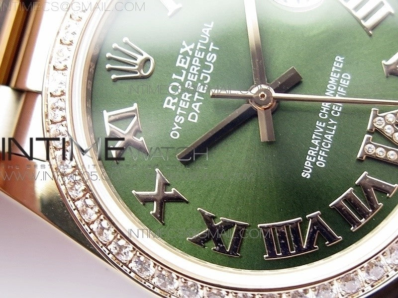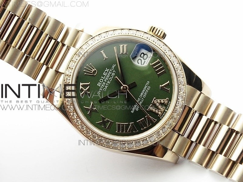 Datejust 31mm 278275 RG Dia Bezel BP Best Edition Green Roman Markers Dial @6 Dia on RG President Bracelet