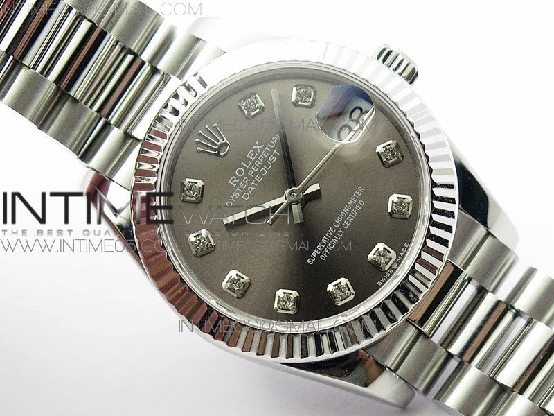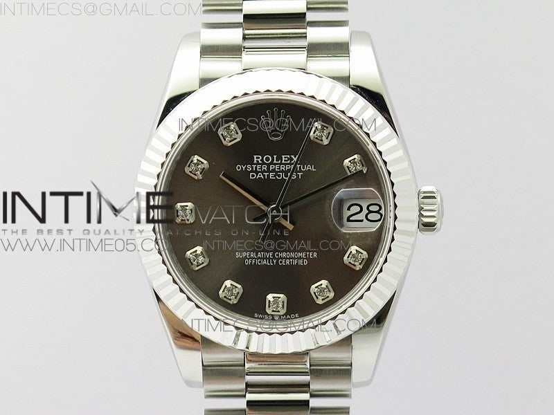 Datejust 31mm 278275 SS BP Best Edition Gray Crystals Markers Dial on SS President Bracelet