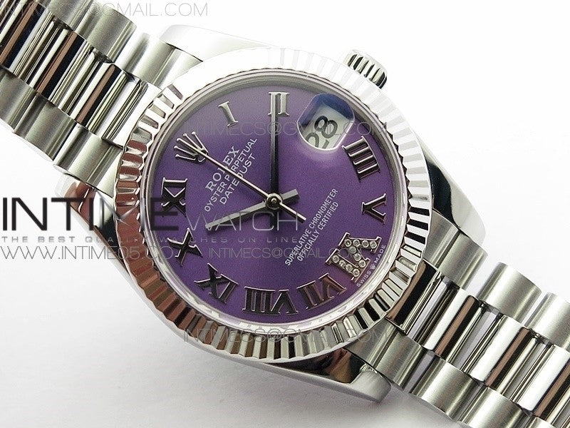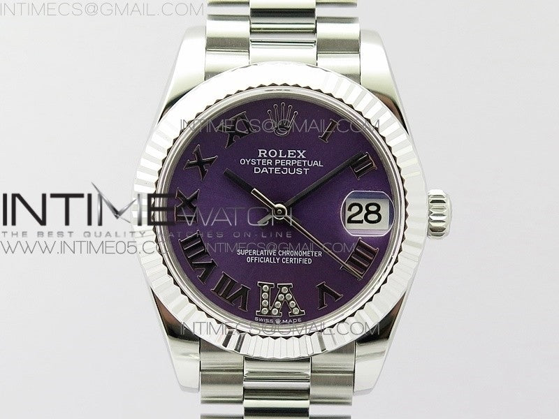 Datejust 31mm 278275 SS BP Best Edition Purple Roman Markers Dial(@6 Crystal Makrer) on SS President Bracelet