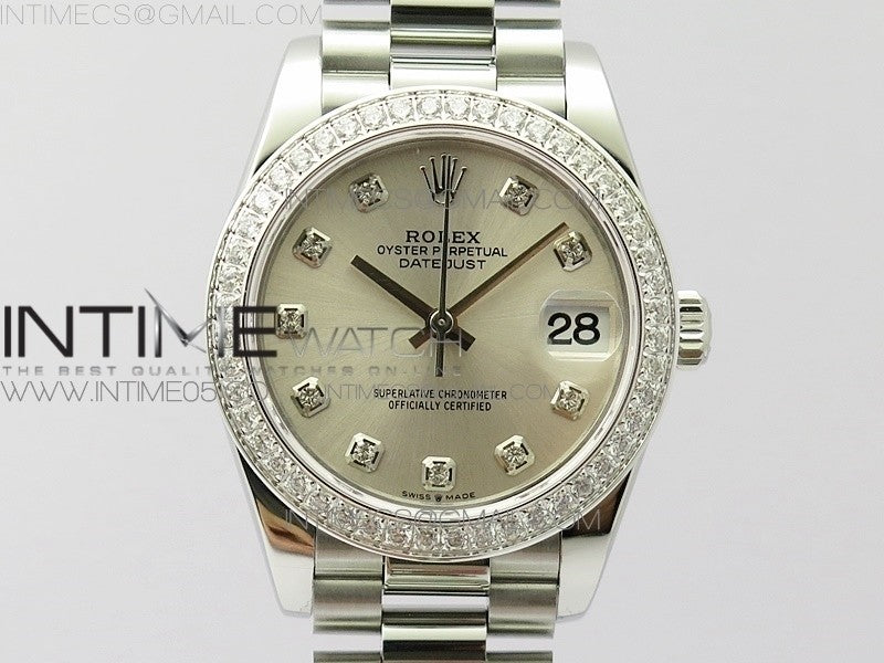 Datejust 31mm 278275 SS Crystal bezel BP Best Edition Silver Dial(@6 Crystal Marker) on SS President Bracelet