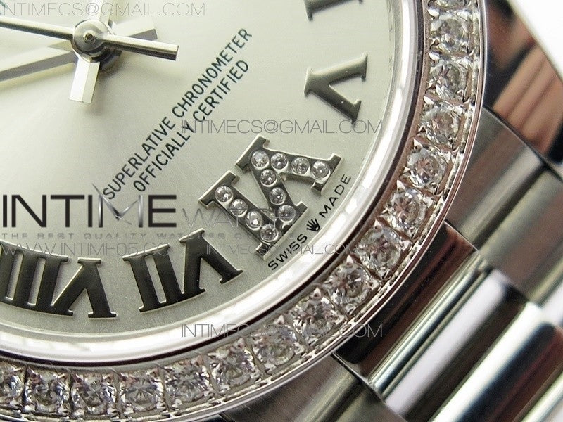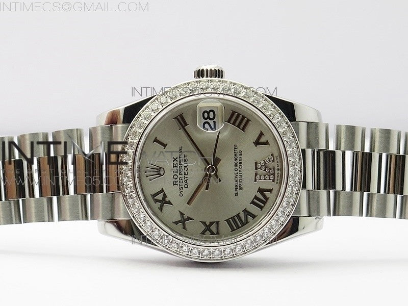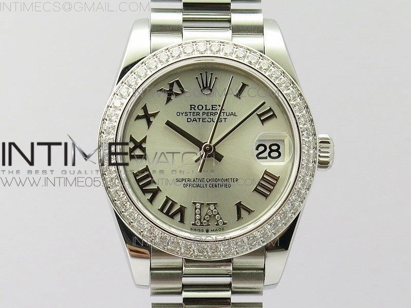 Datejust 31mm 278275 SS Crystals bezel BP Best Edition Silver Roman Markers Dial(@6 Crystal Marker) on SS President Bracelet