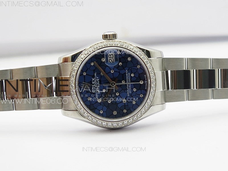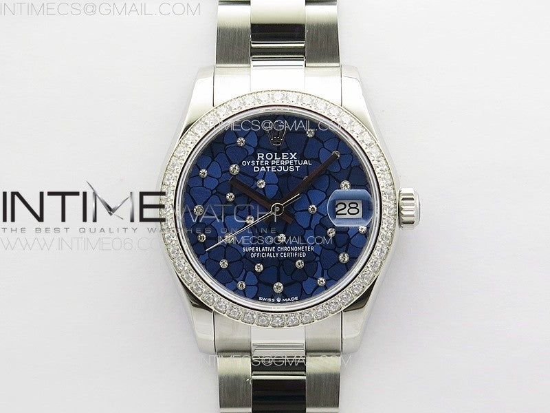 DateJust 31mm 72610 Crystals Bezel SS APSF Best Edition Blue Flowers Crystals Dial on Oyster Bracelet A2824