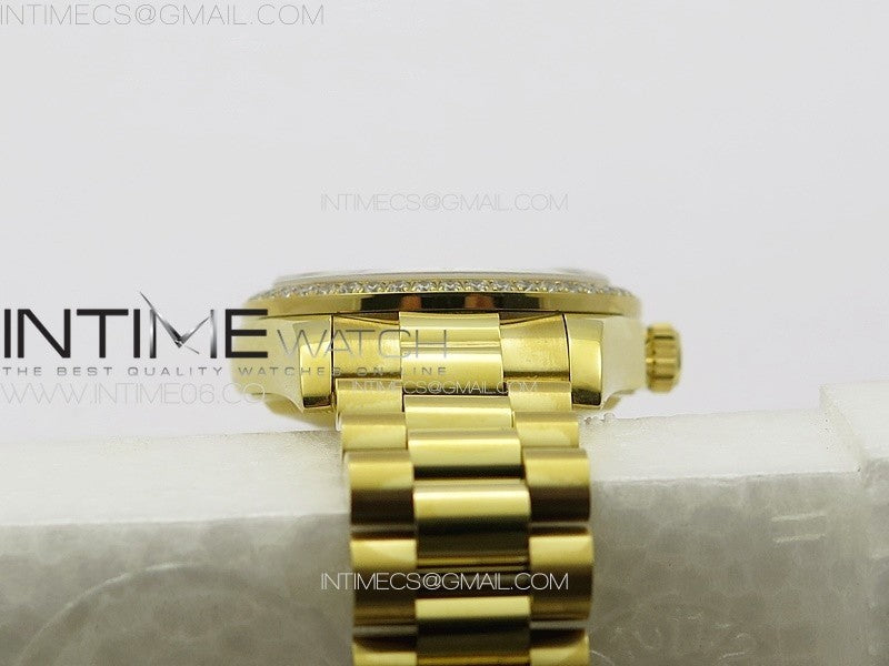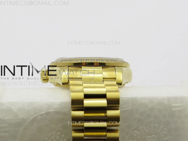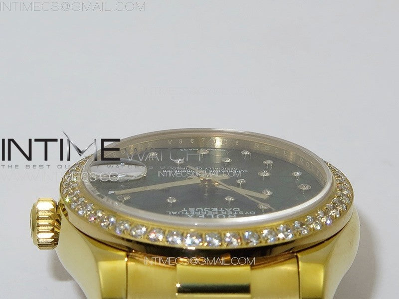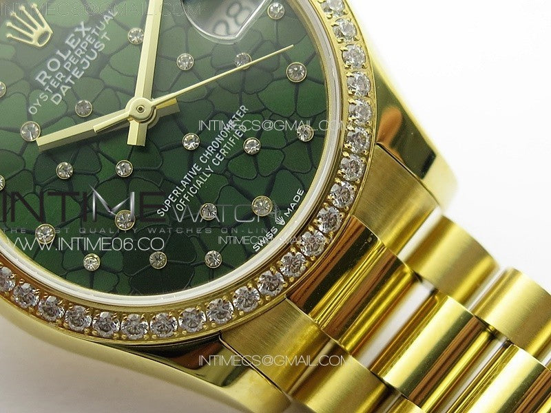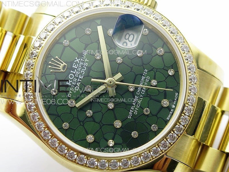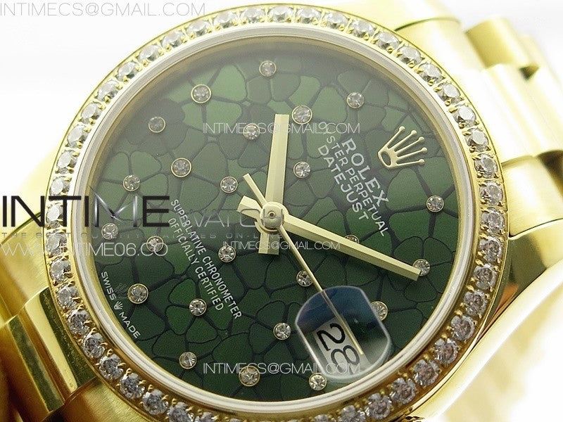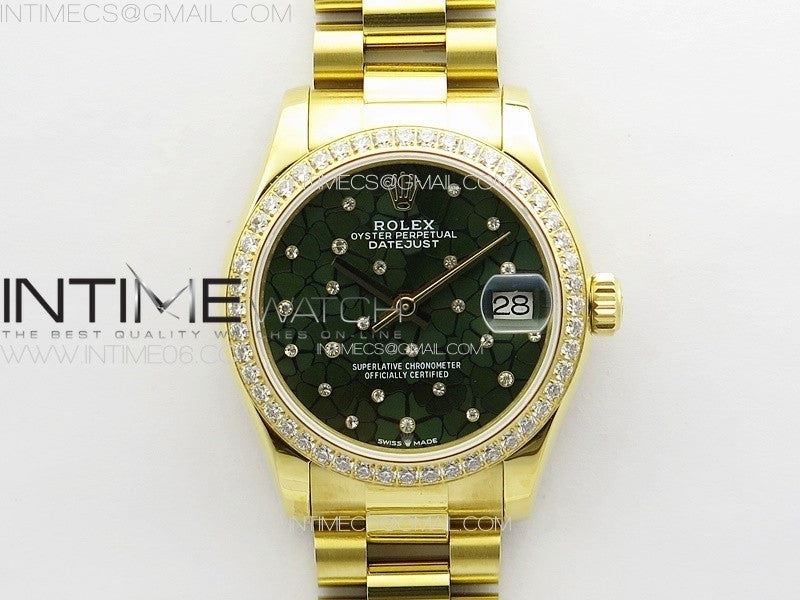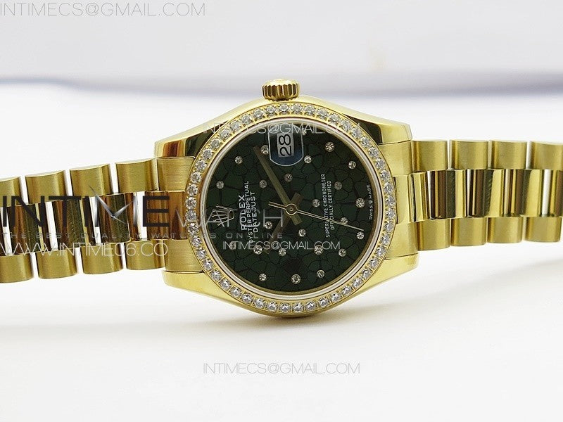 DateJust 31mm YG APSF Best Edition Green Flowers Crystals Dial on President Bracelet A2824