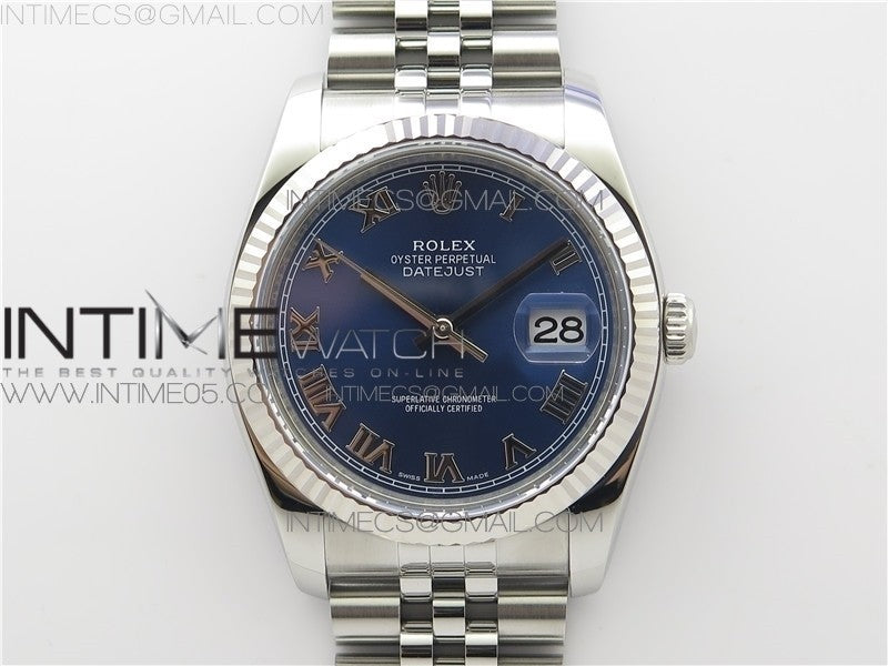 DateJust 36 SS 116234 ARF 1:1 Best Edition 904L Steel Blue Dial Roman Markers on Jubilee Bracelet SH3135 V3