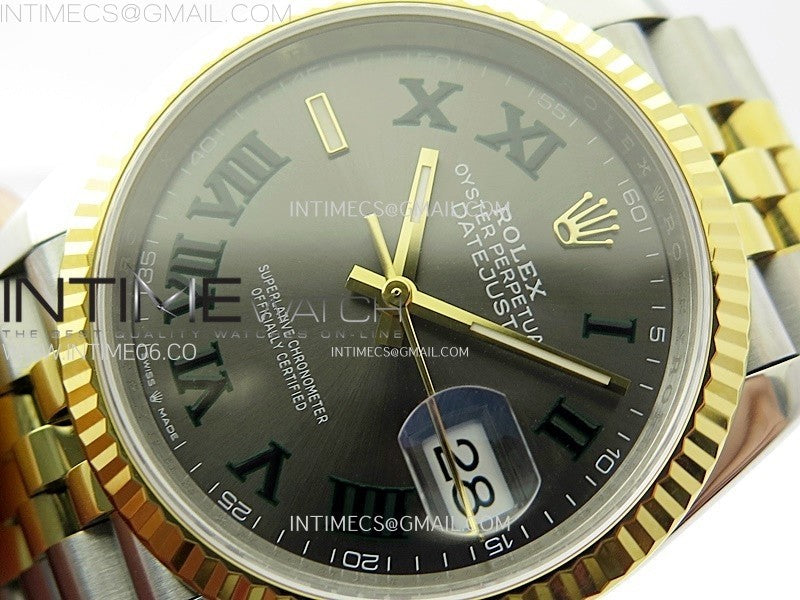DateJust 36 SS 126233 904L SS/YG VSF 1:1 Best Edition Gray Dial Green Roman Markers on Jubilee Bracelet VS3235