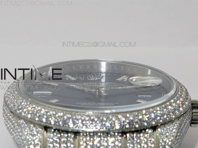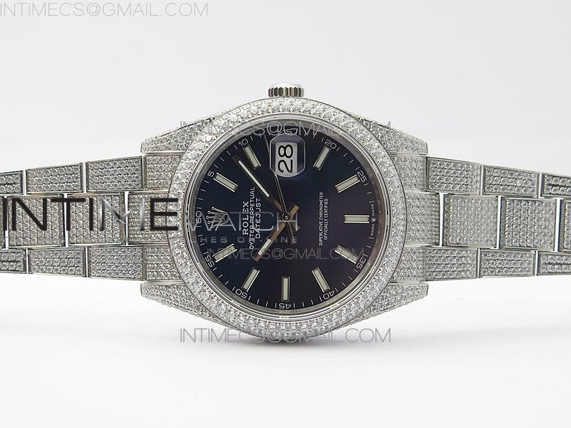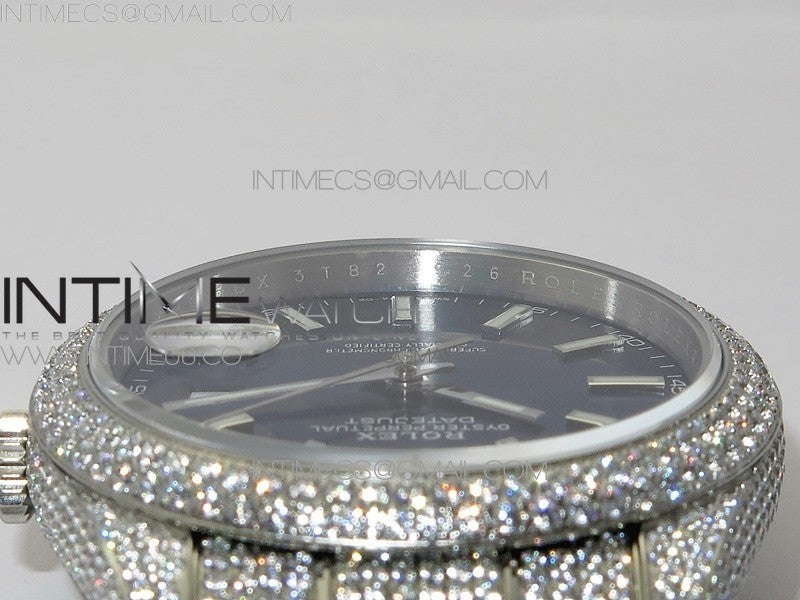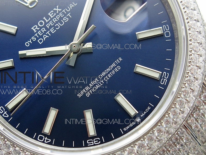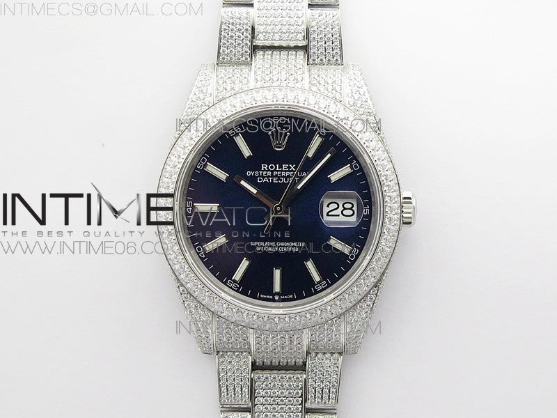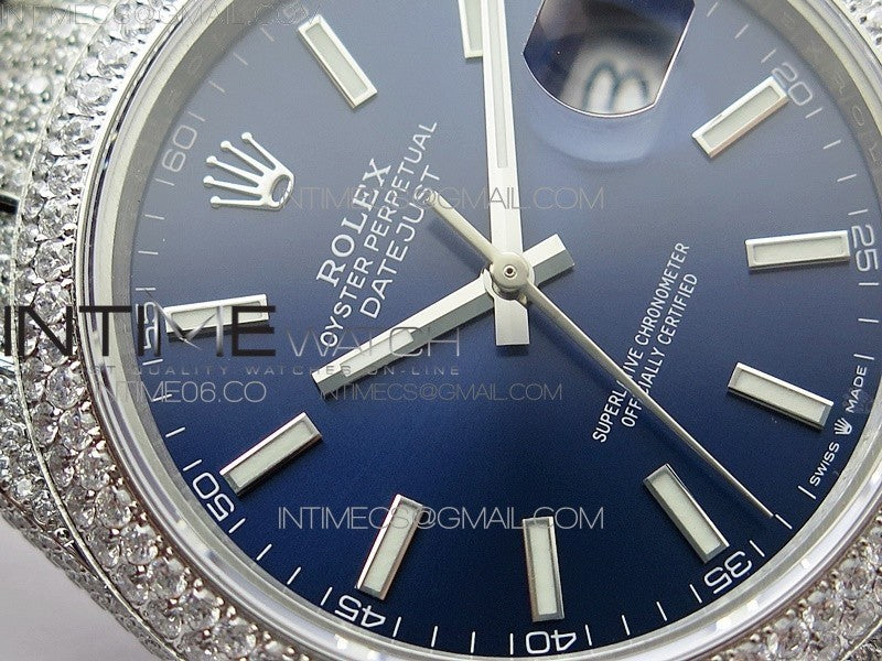 DateJust 41 126334 904 Full Paved Diamonds BP Best Edition Blue Dial Sticks Markers on Oyster Bracelet A2824