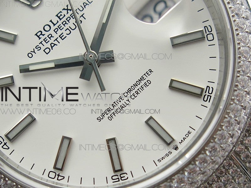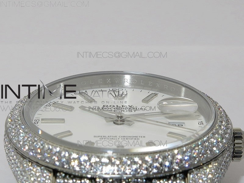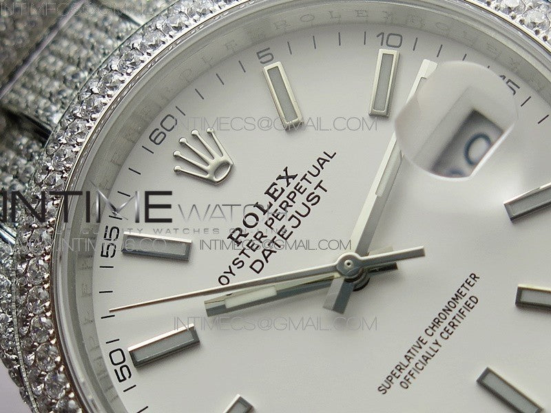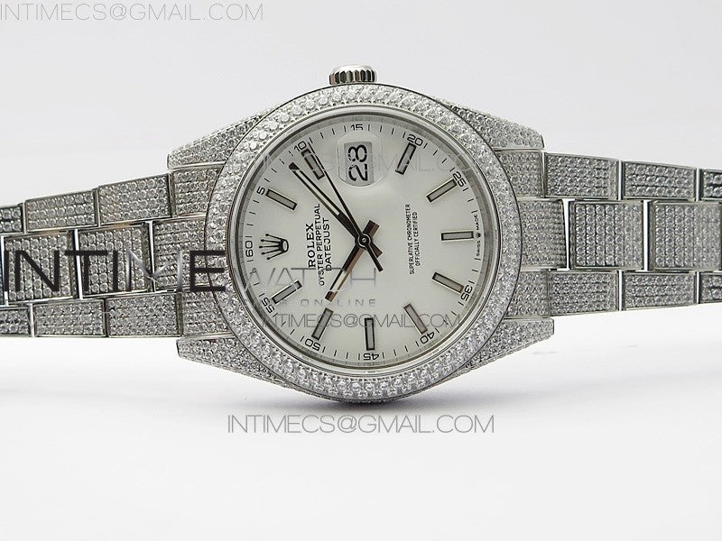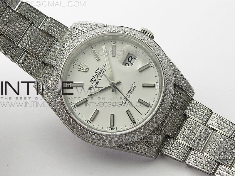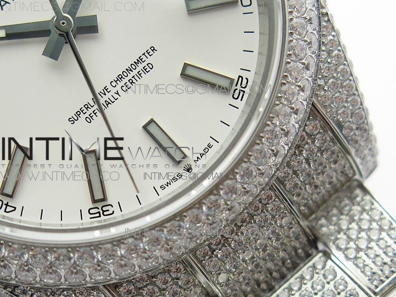 DateJust 41 126334 904 Full Paved Diamonds BP Best Edition White Dial Sticks Markers on Oyster Bracelet A2824