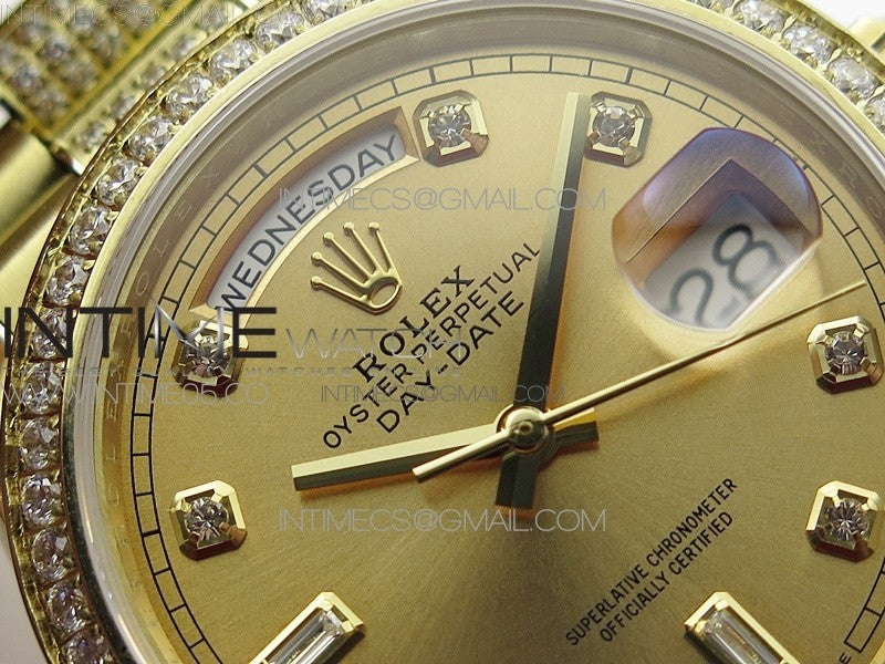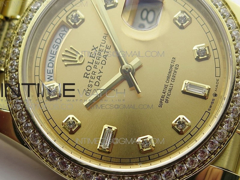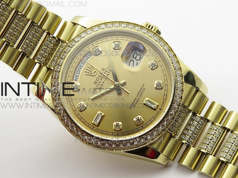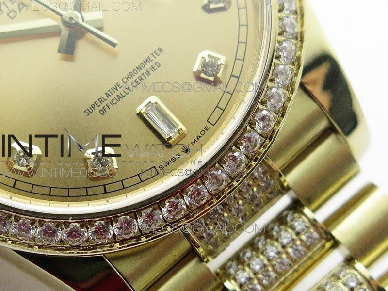 Day-Date 36 128235 YG/Crystal BP Best Edition YG Crystal Marker Dial on YG President Bracelet A2836