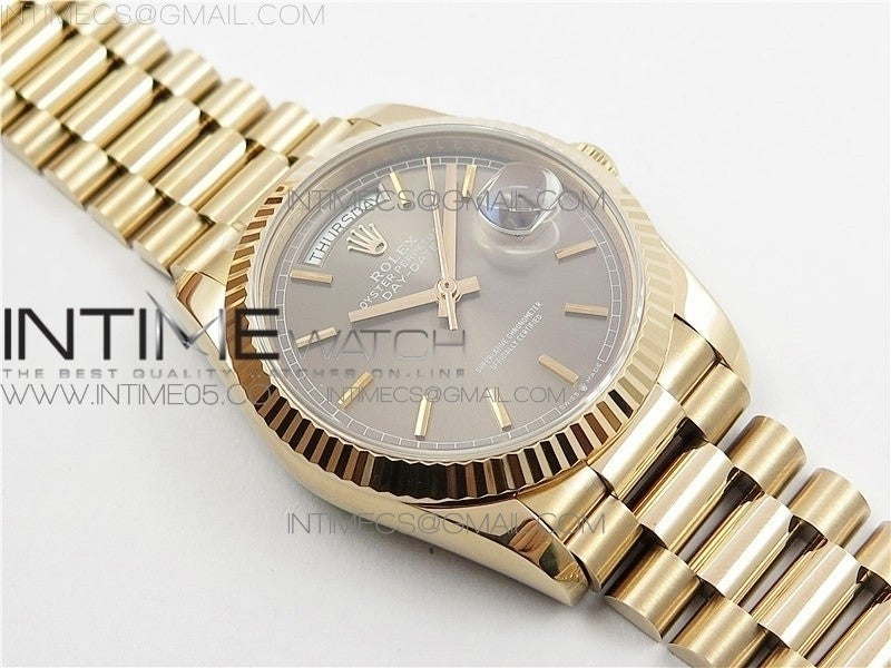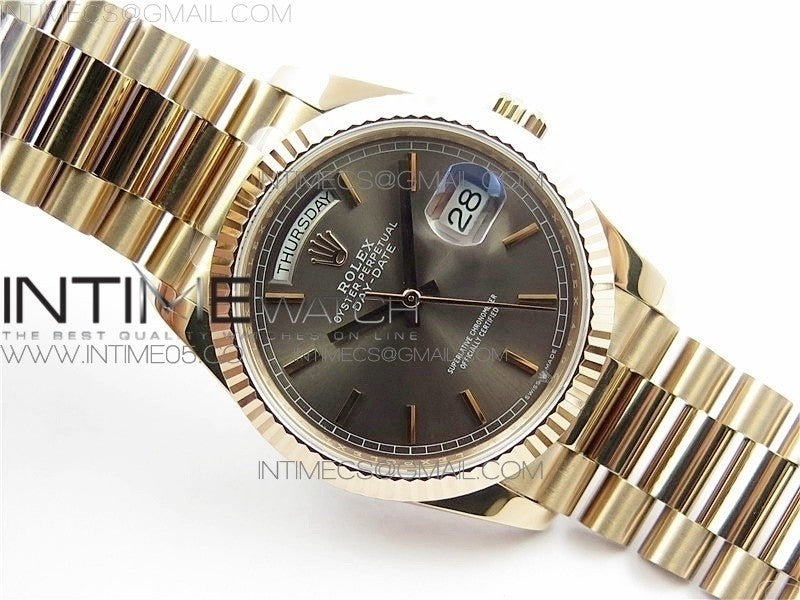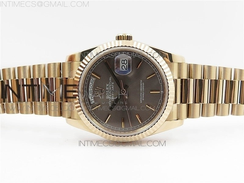 Day-Date 36 128239 RG BP Best Edition Gray Sticks Markers Dial on RG President Bracelet