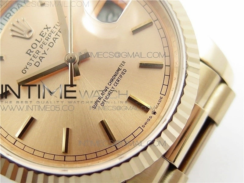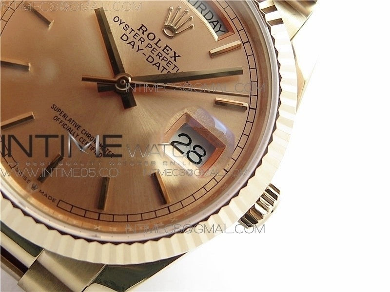 Day-Date 36 128239 RG BP Best Edition Pink Gold Sticks Markers Dial on RG President Bracelet