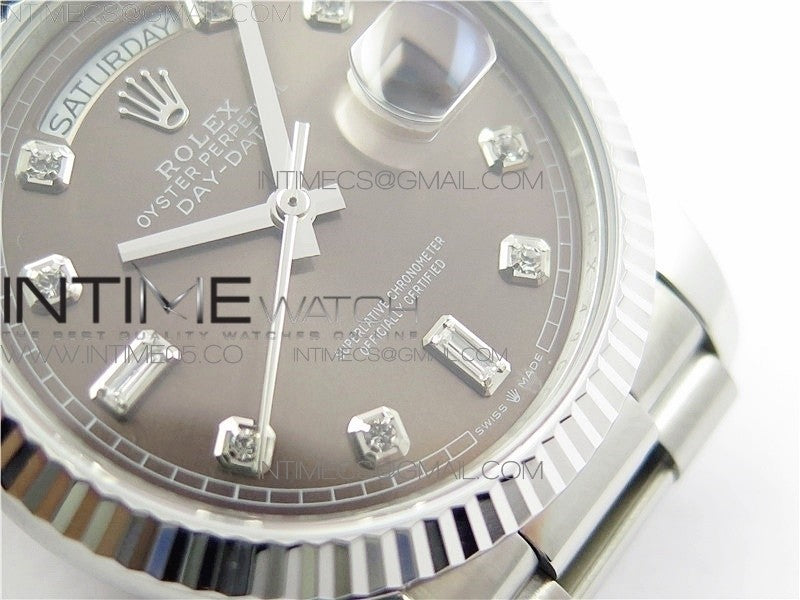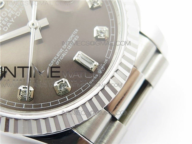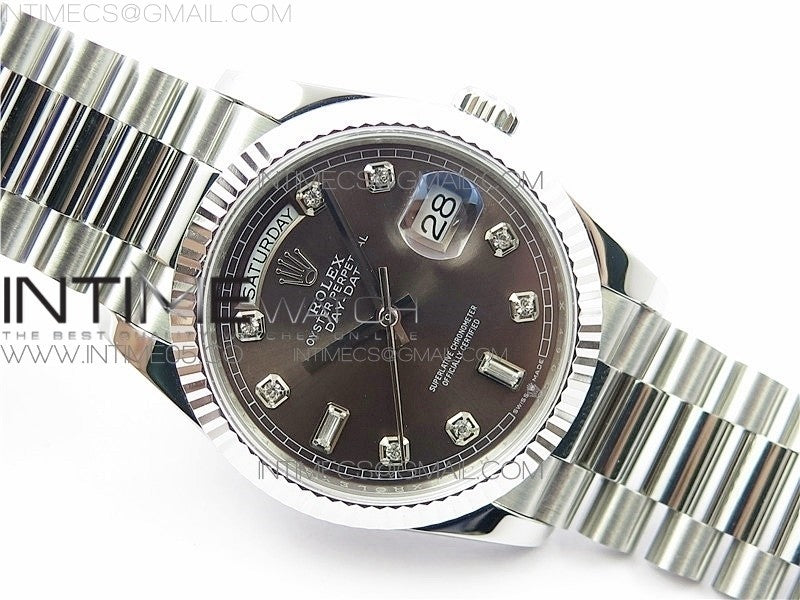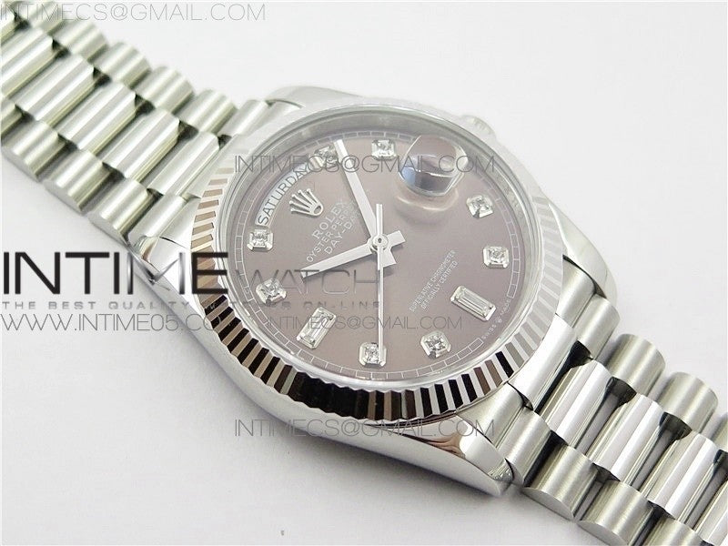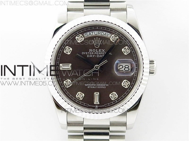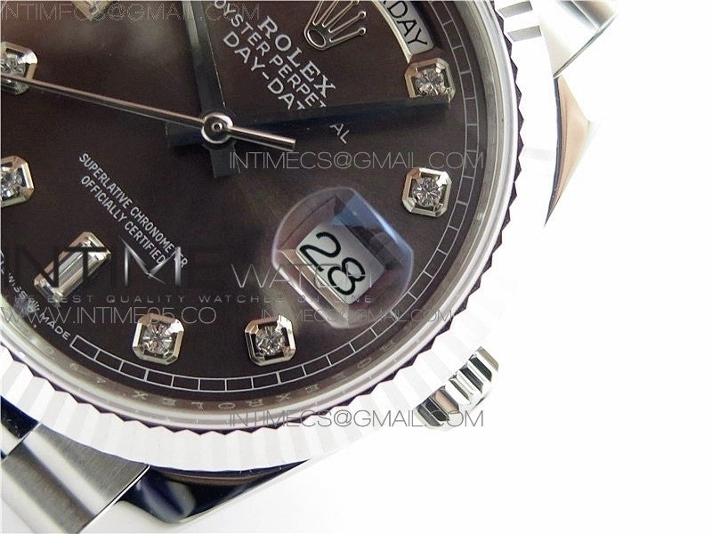Day-Date 36 128239 SS BP Best Edition Brown Crystal Markers Dial on SS President Bracelet