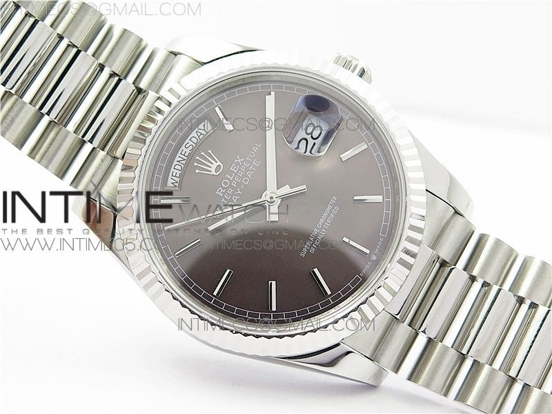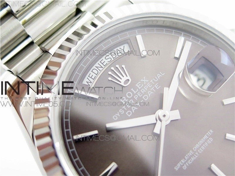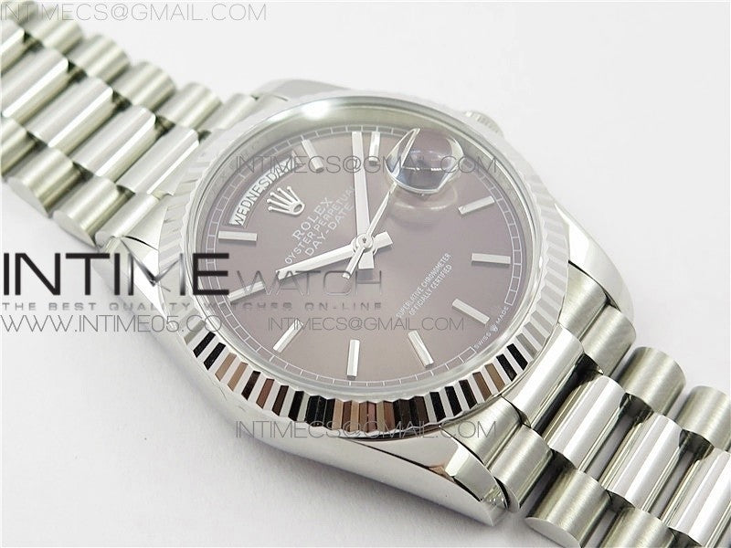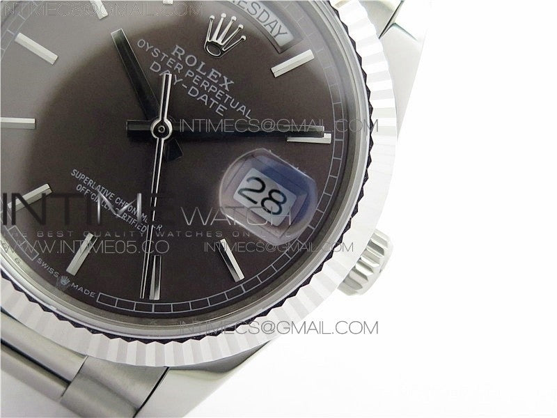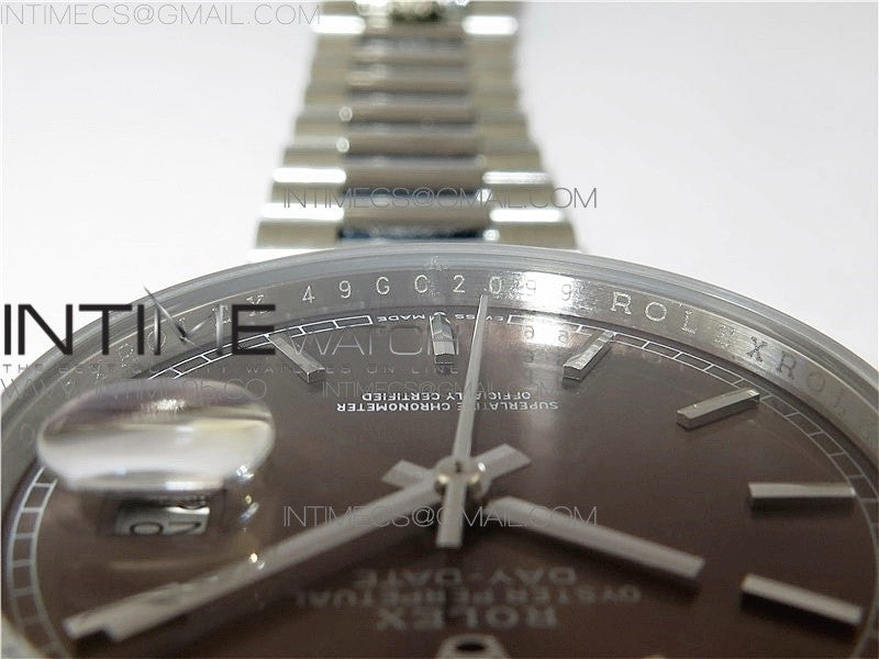 Day-Date 36 128239 SS BP Best Edition Brown Sticks Markers Dial on SS President Bracelet