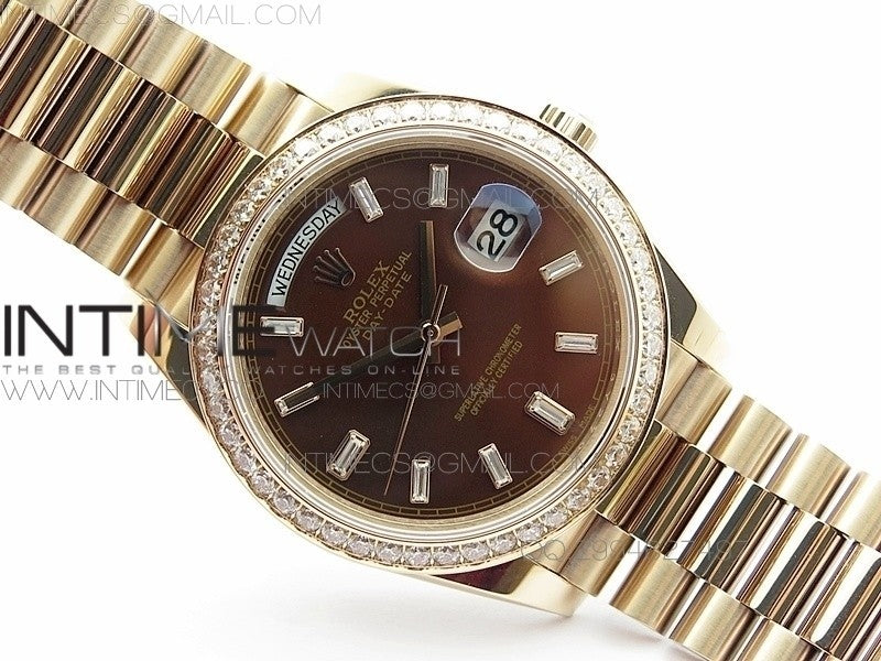 Day-Date 40 RG BP 1:1 Best 228239 Brown Diamond Sticks Dial Bezel on SS Bracelet