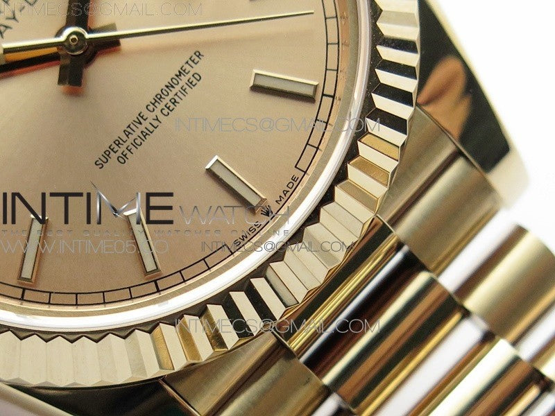 Day-Date 40mm 228239 BP New Dial Version 904 RG Stick Markers RG Dial on RG President Bracelet A2836