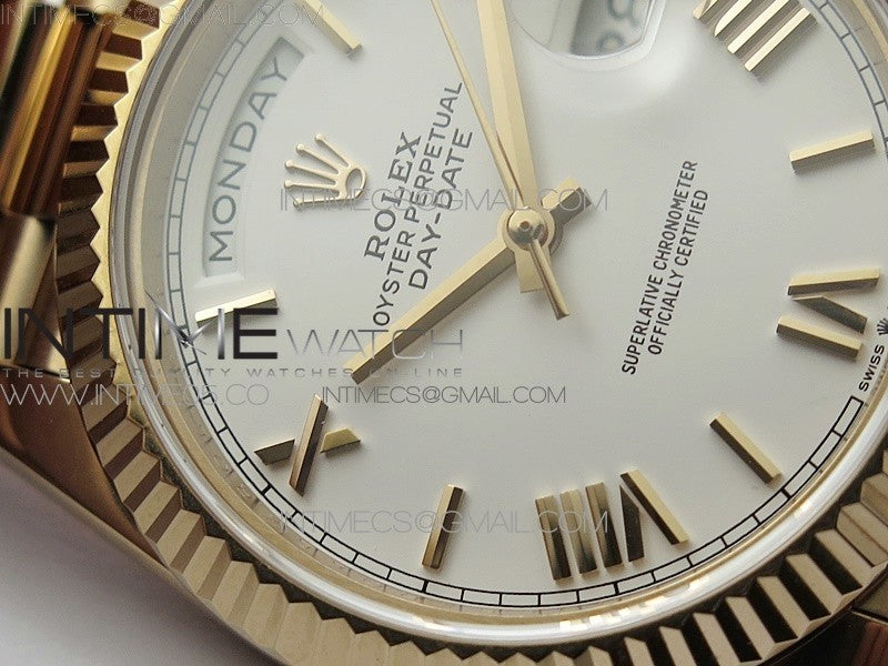Day-Date 40mm 228239 BP New Dial Version 904 RG White Roman Markers Dial on RG President Bracelet A2836