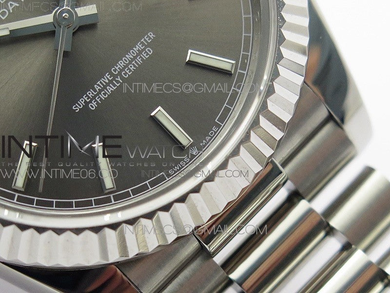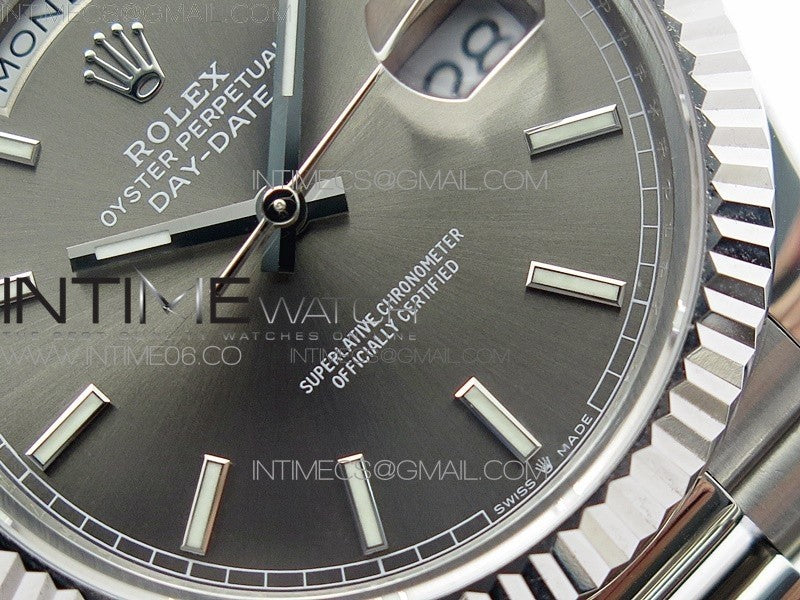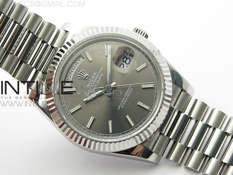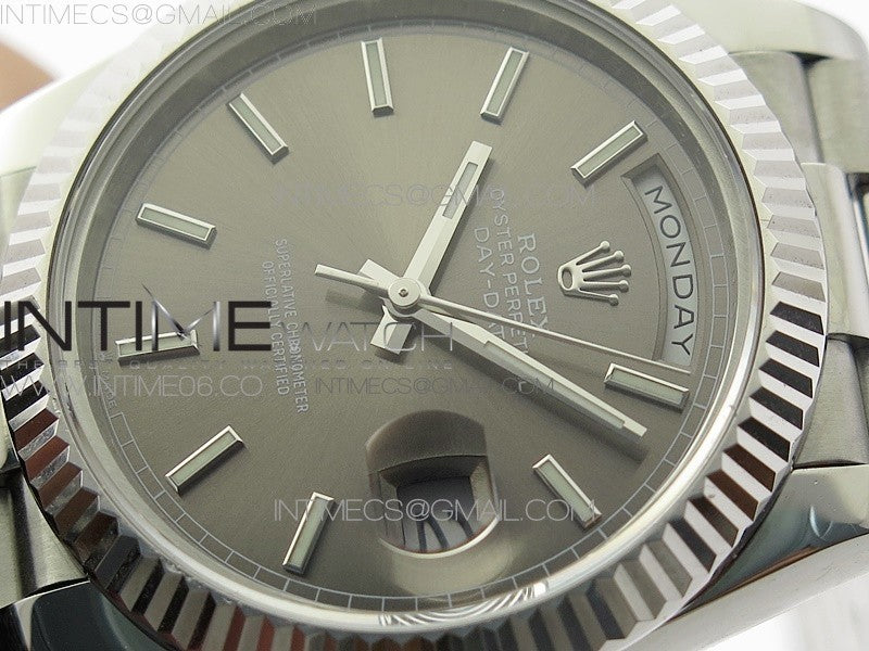 Day Date 40mm SS BP 1:1 Best Edition Gray Stick Dial on SS Bracelet A2836