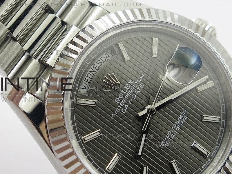 DayDate 40mm BP Best 228239 SS Gray Stripe Stick Dial on SS Bracelet