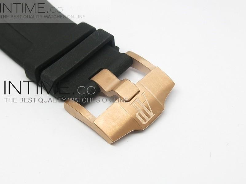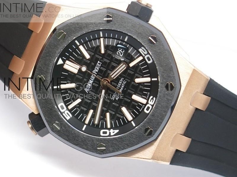 Case: rose gold plated case, ceramic bezel, ceramic crown.