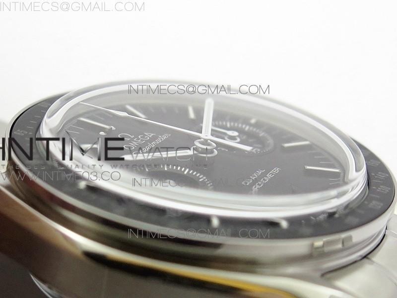 Movement   7750 automatic chronograph movement decorate to Omega 9300 movement with the black balance wheel, 2 hands on 3 clock sub dial can work as per genuine.
