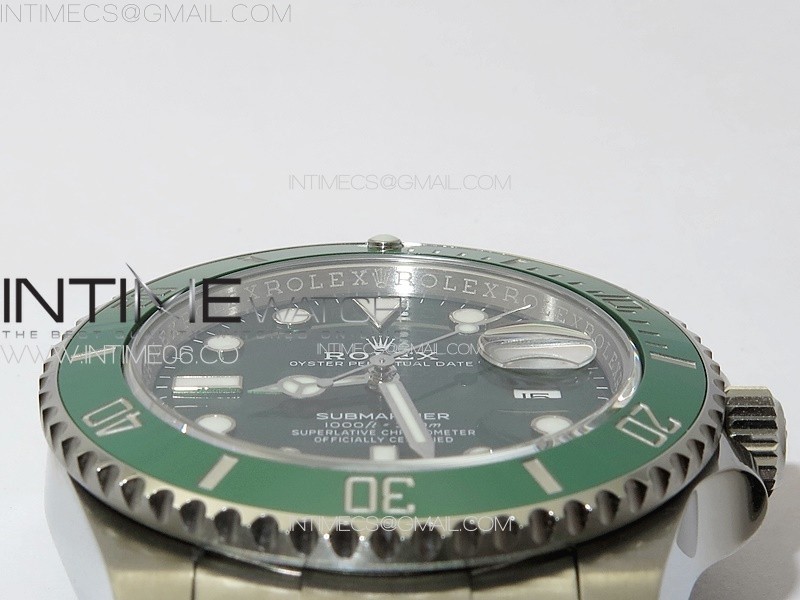 Bezel     Uni-directional rotating green ceramic bezel, latest Clean v3 green bezel