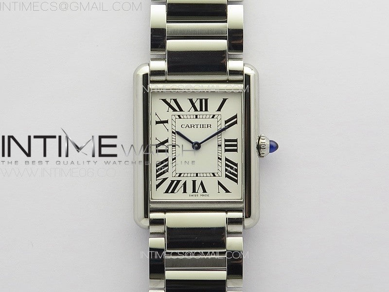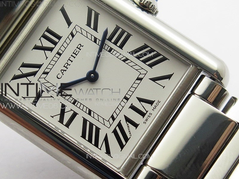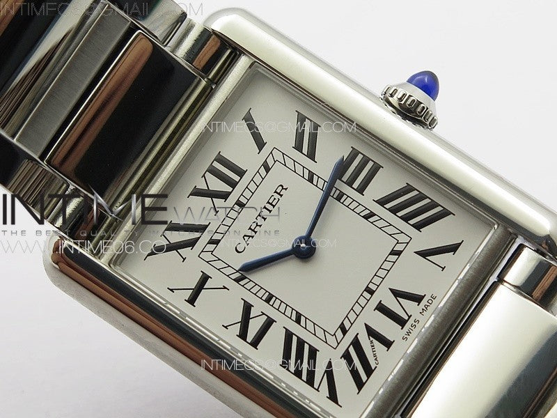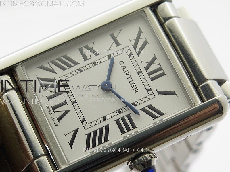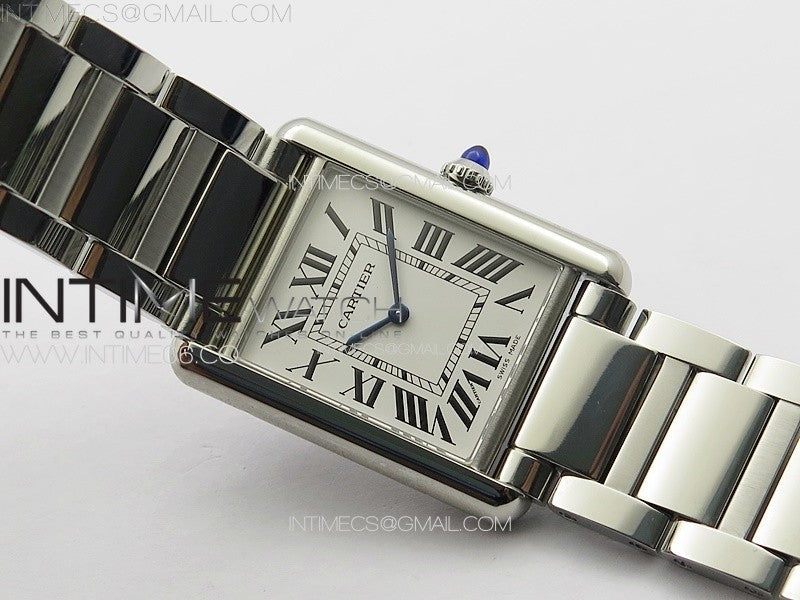 Tank Louis Ladies 25mm SS 8848F 1:1 Best Edition White Dial on SS Bracelet Ronda Quartz(Free leather strap)