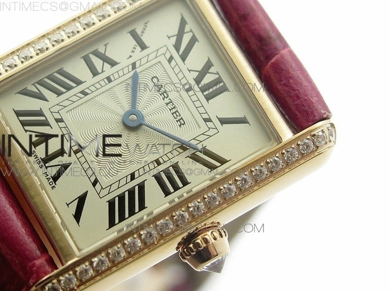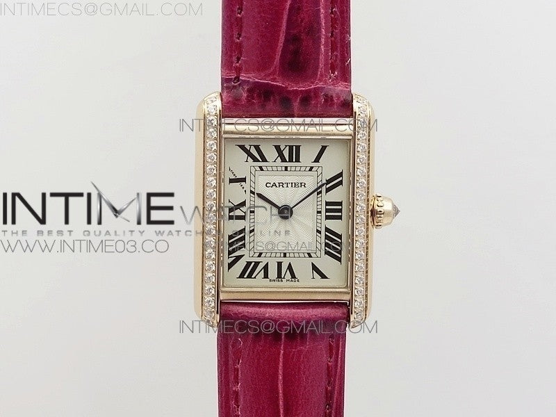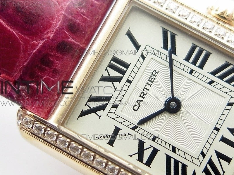 Tank Louis WJTA0014 22.5mm RG TKF 1:1 Best Edition White Dial Diamond Bezel on Pink Leather Strap Ronda Quartz