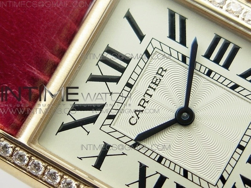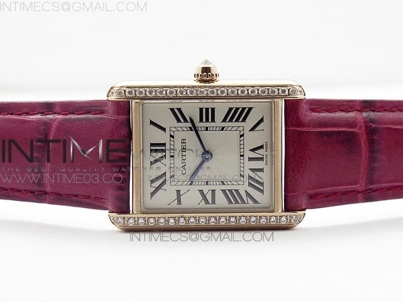Tank Louis WJTA0014 25.5mm RG TKF 1:1 Best Edition White Dial Diamond Bezel on Pink Leather Strap Ronda Quartz