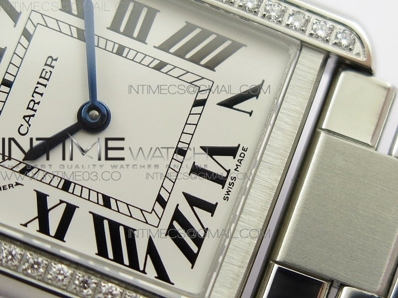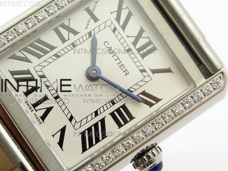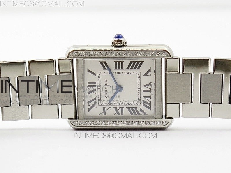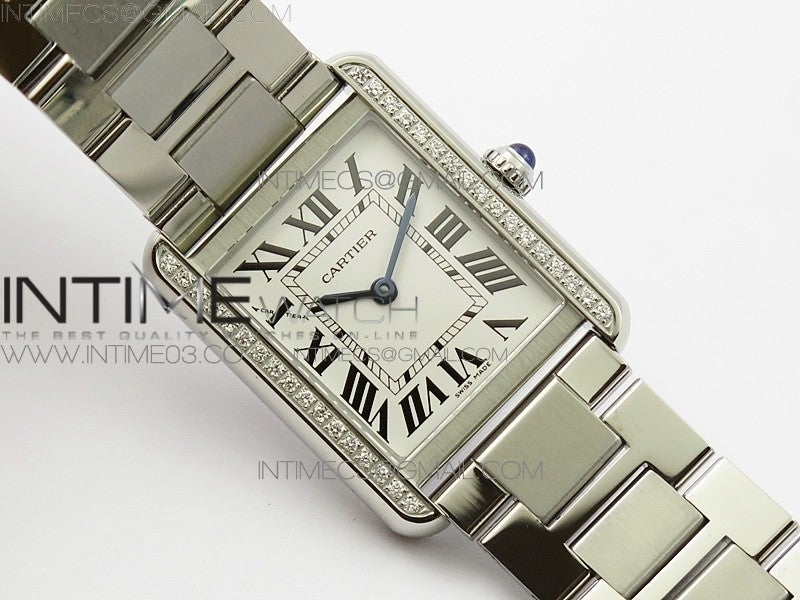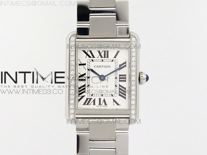 Tank Solo Ladies 25mm SS Diamond Bezel K11F 1:1 Best Edition White Dial on SS Bracelet Ronda Quartz