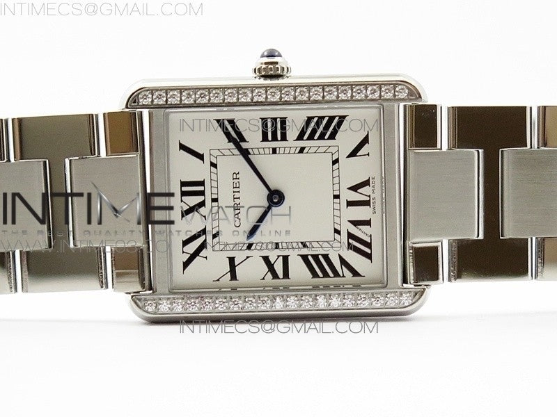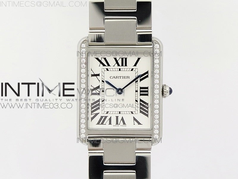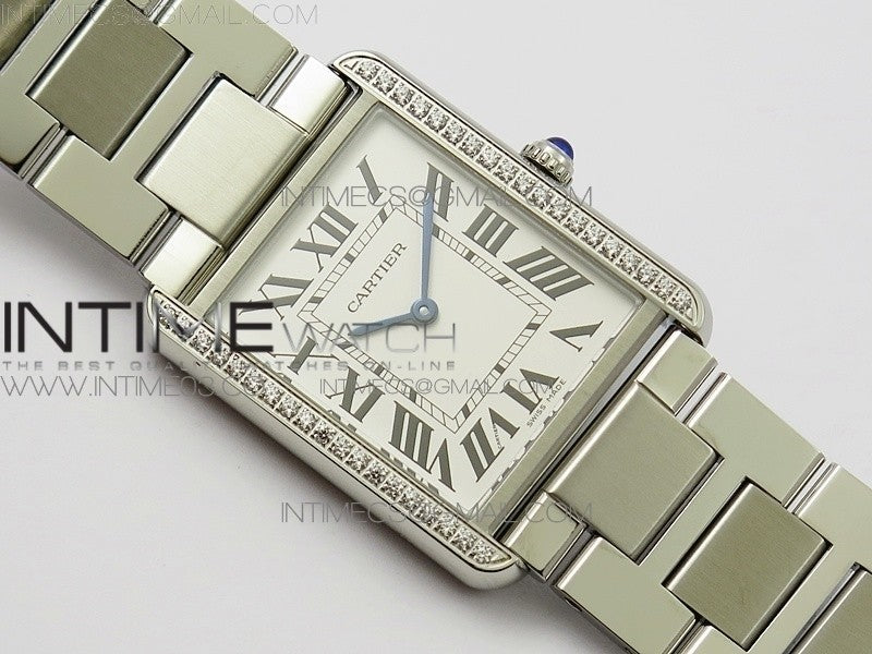 Tank Solo Ladies 28mm SS Diamond Bezel K11F 1:1 Best Edition White Dial on SS Bracelet Ronda Quartz